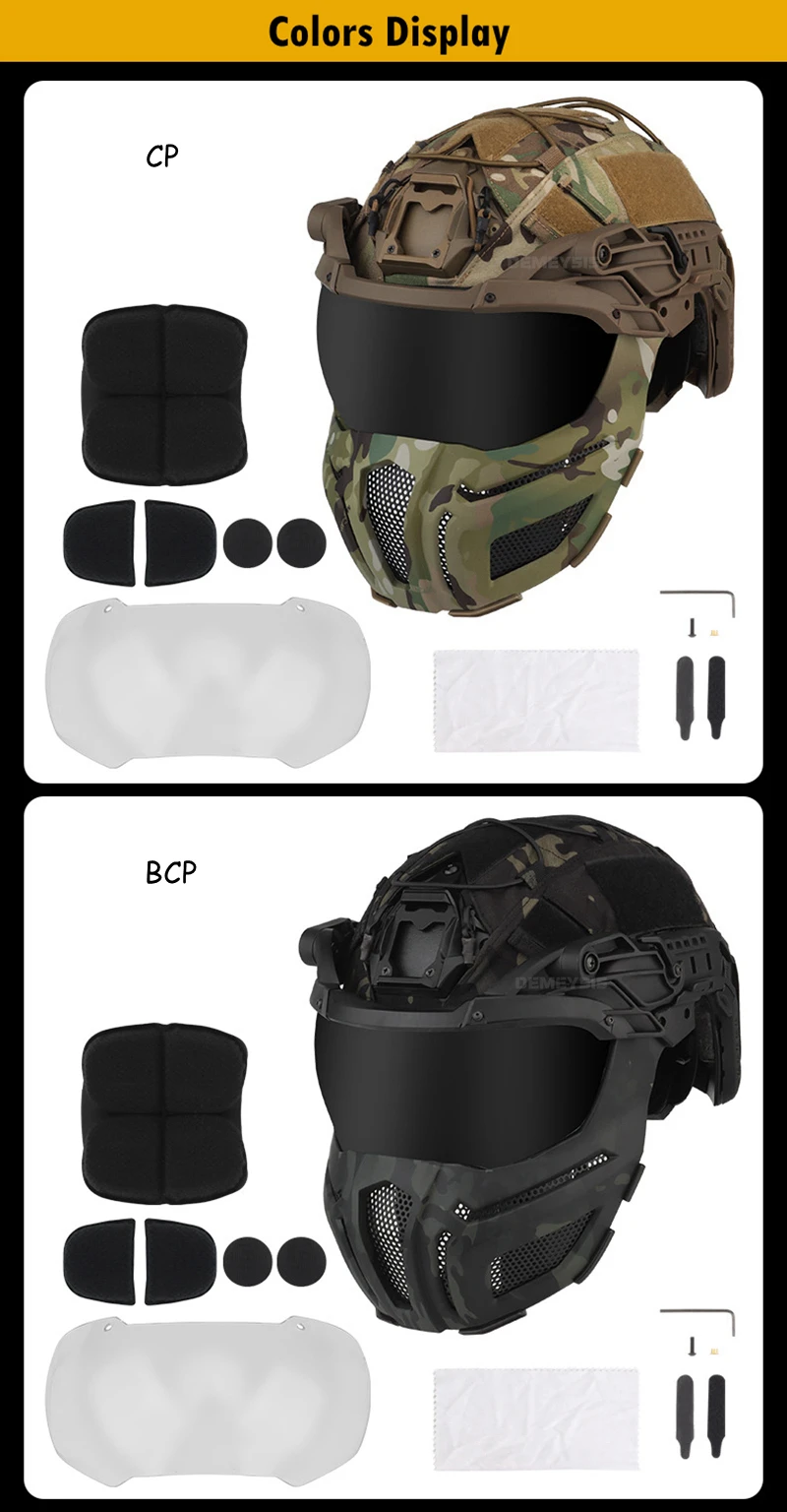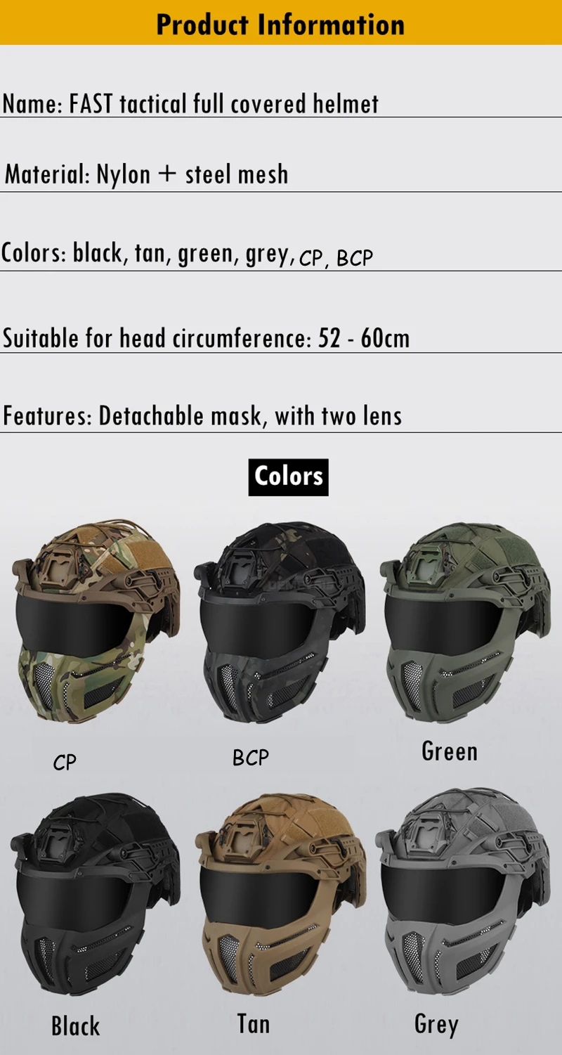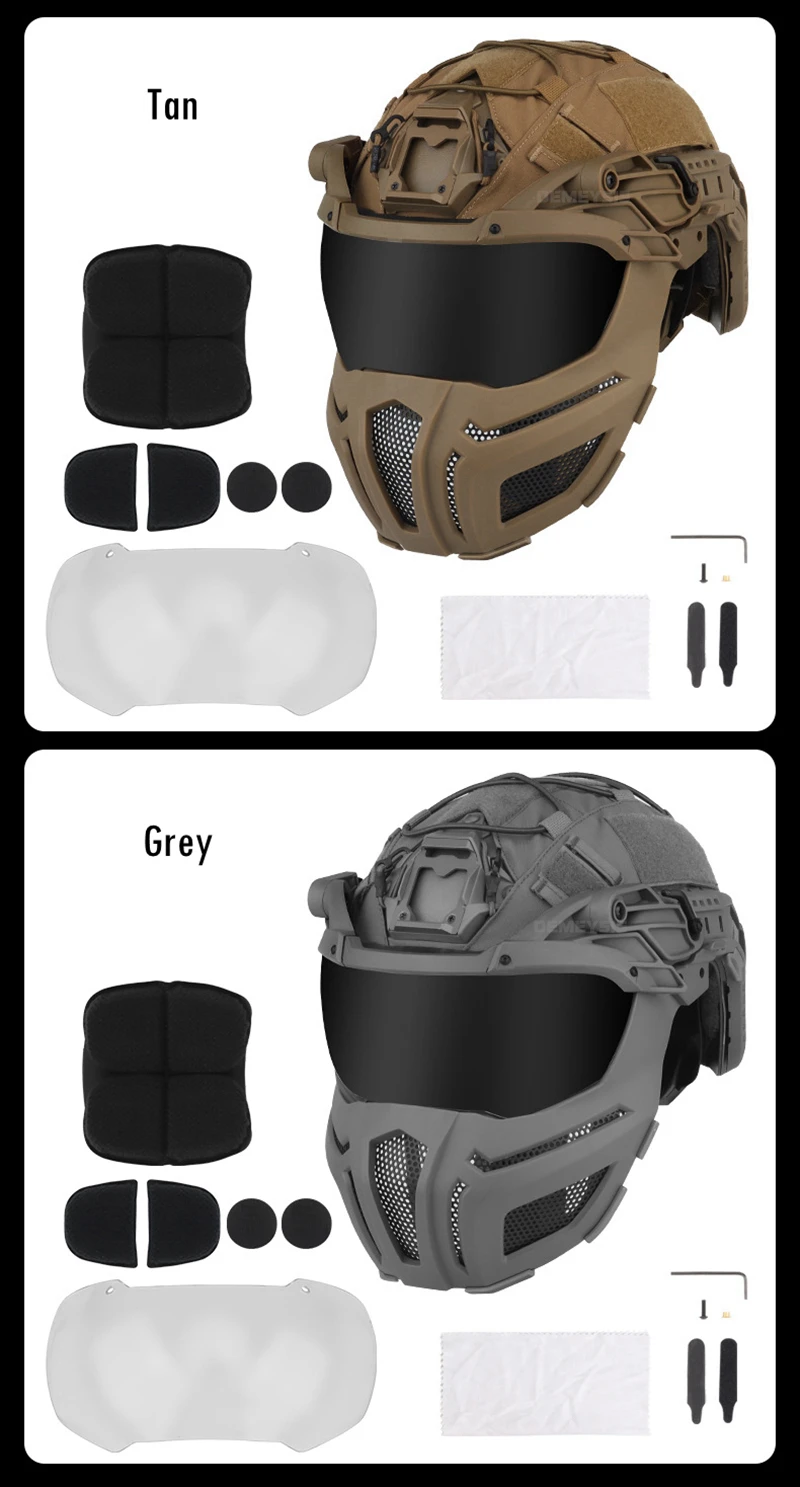 Cascos tácticos totalmente cubiertos de 2 lentes, casco para deportes de caza y tiro al aire libre, conjunto de máscara, cubierta ajustable para casco de combate Airsoft