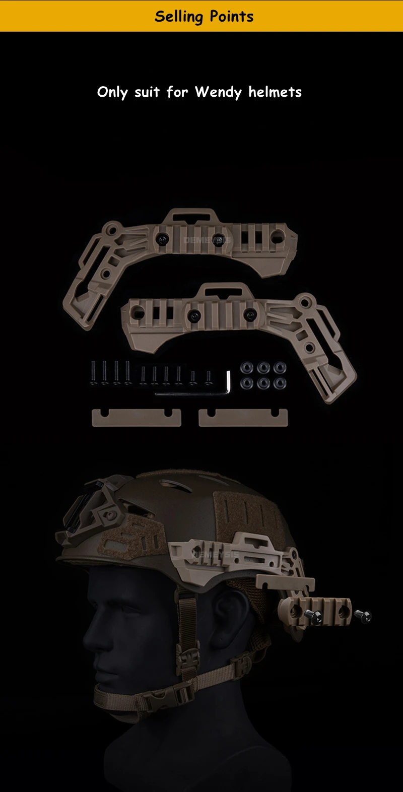 Cascos tácticos Wendy, rieles guía laterales, Kit de riel de montaje para casco Airsfot de caza y tiro para equipo Wendy 3,0, accesorios para casco - imagen 2