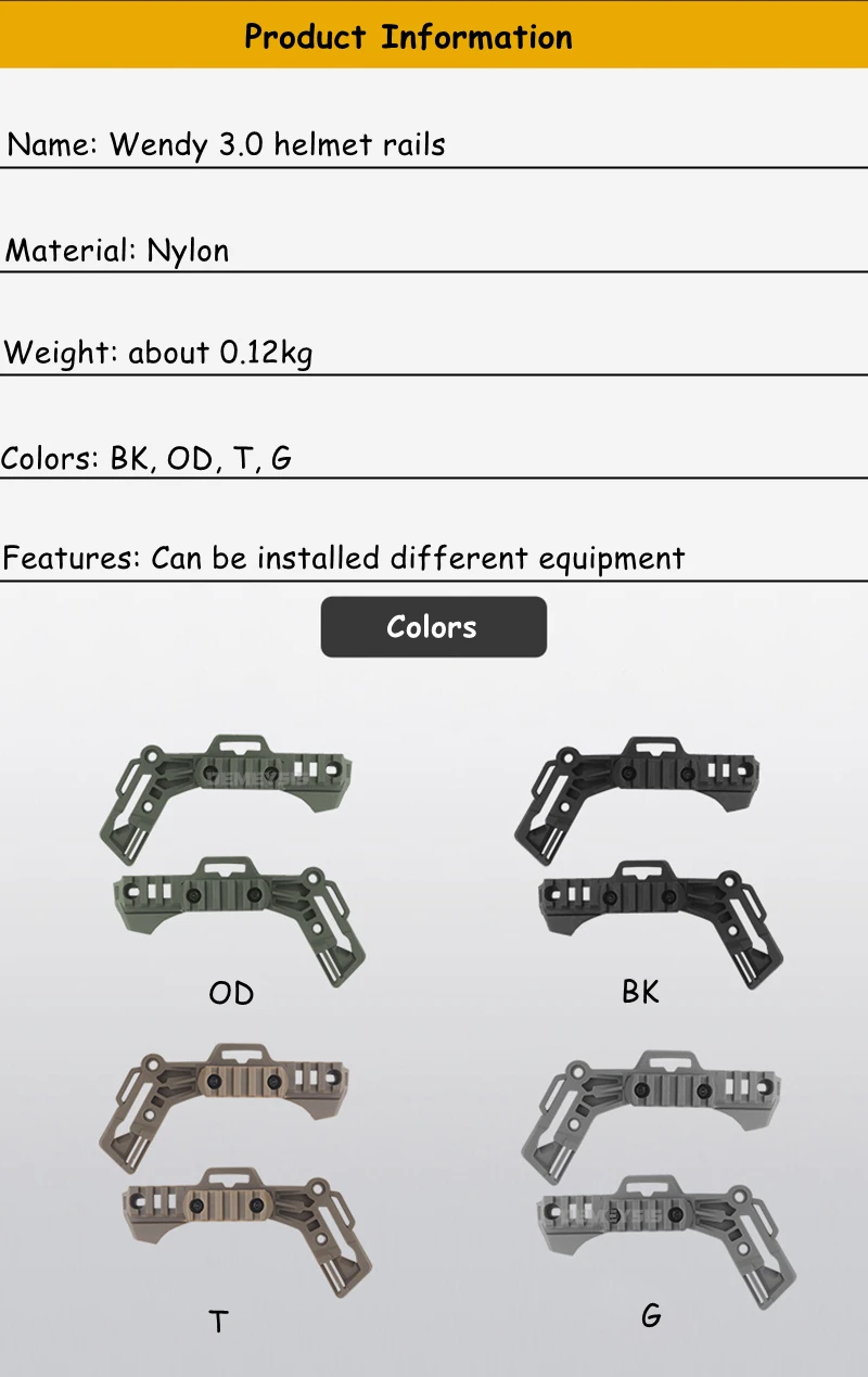 Cascos tácticos Wendy, rieles guía laterales, Kit de riel de montaje para casco Airsfot de caza y tiro para equipo Wendy 3,0, accesorios para casco - imagen 1