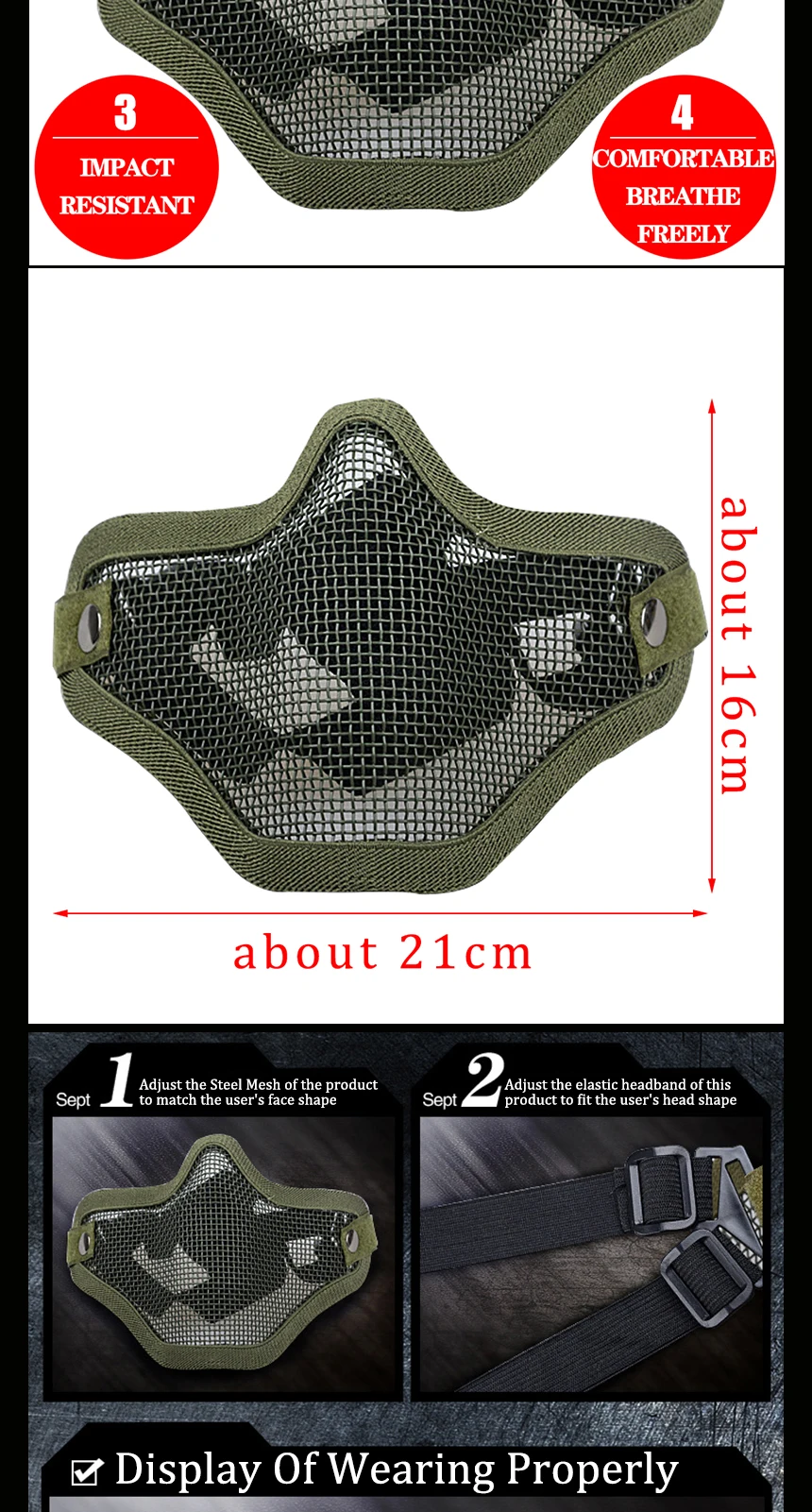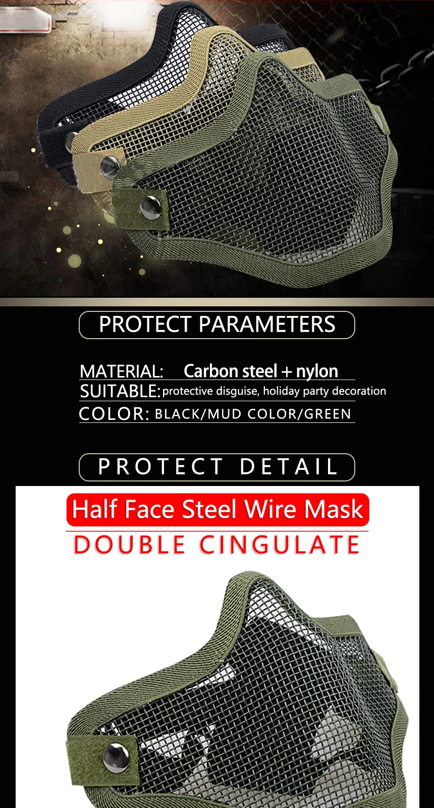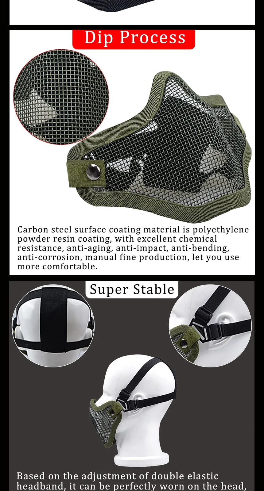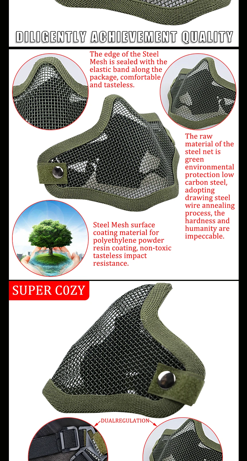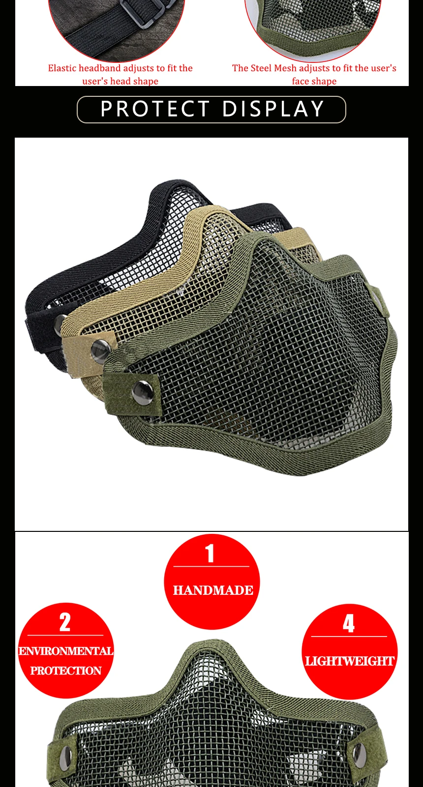 Tactical Hunting Sport Protection Metal Steel Net Mesh Half Cover Military Halloween Party Half Face Mask