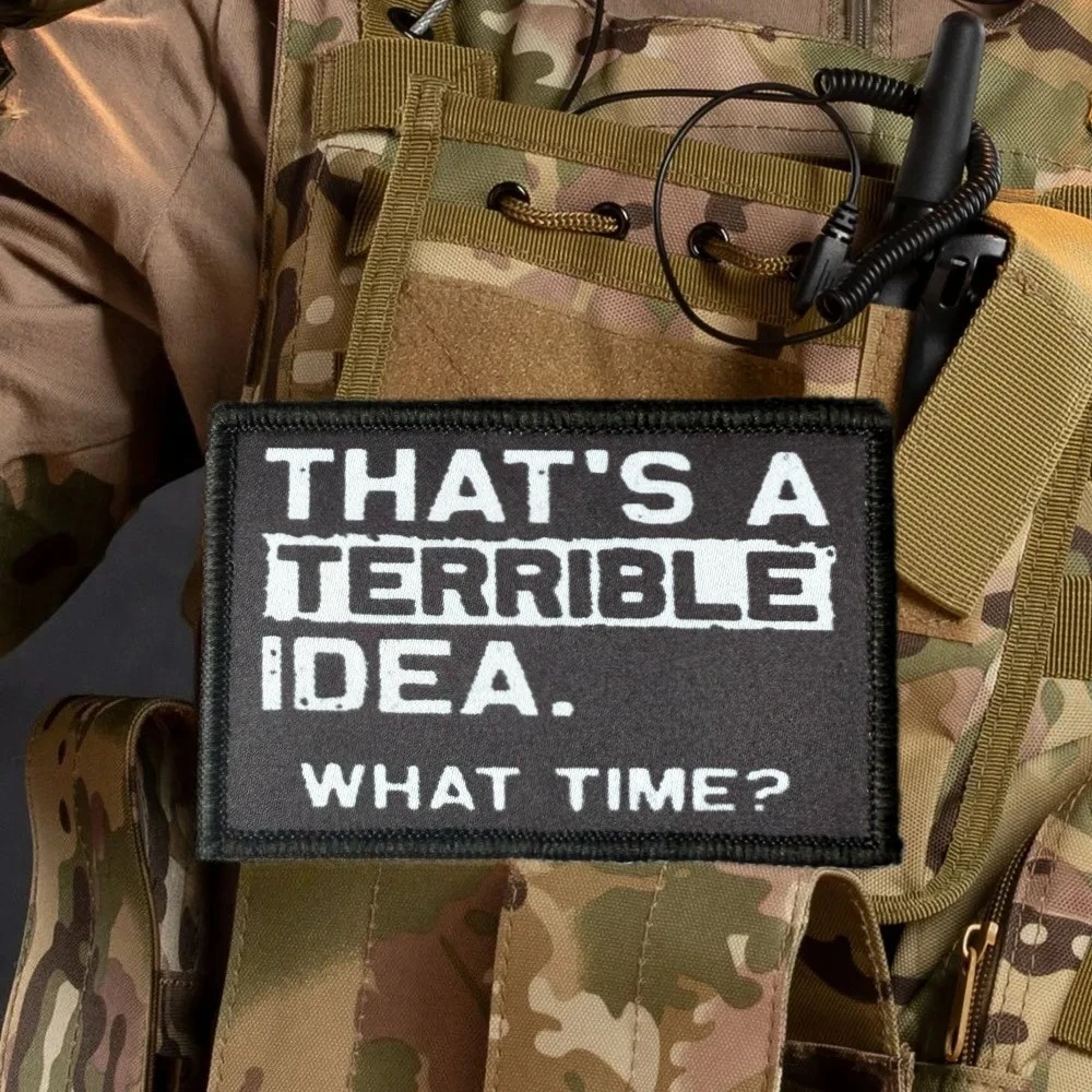 ¿CE ES UNA IDEA TERRIBLE WHAT TIME? Parche táctico Brazalete militar Mochila DIY Parche decorativo