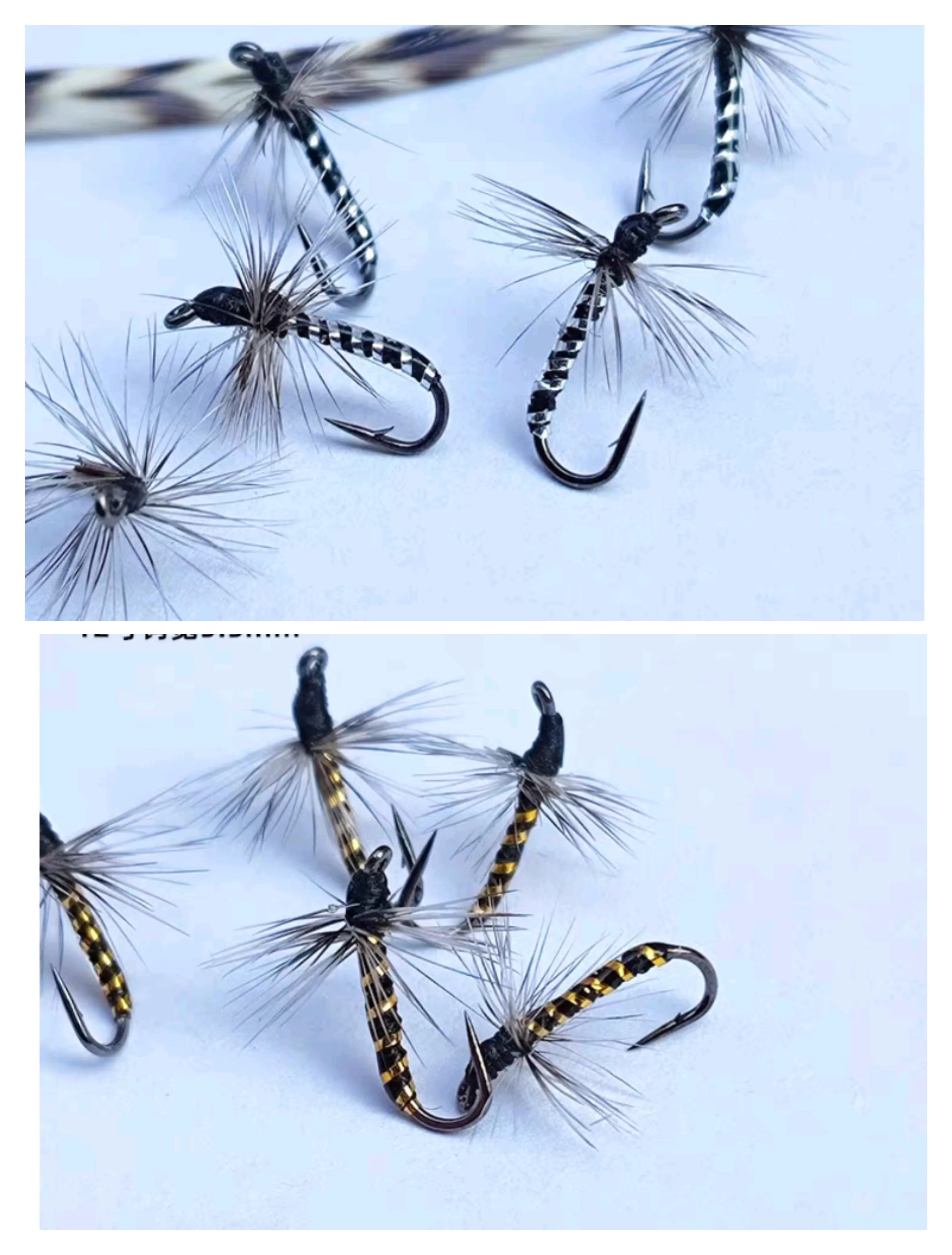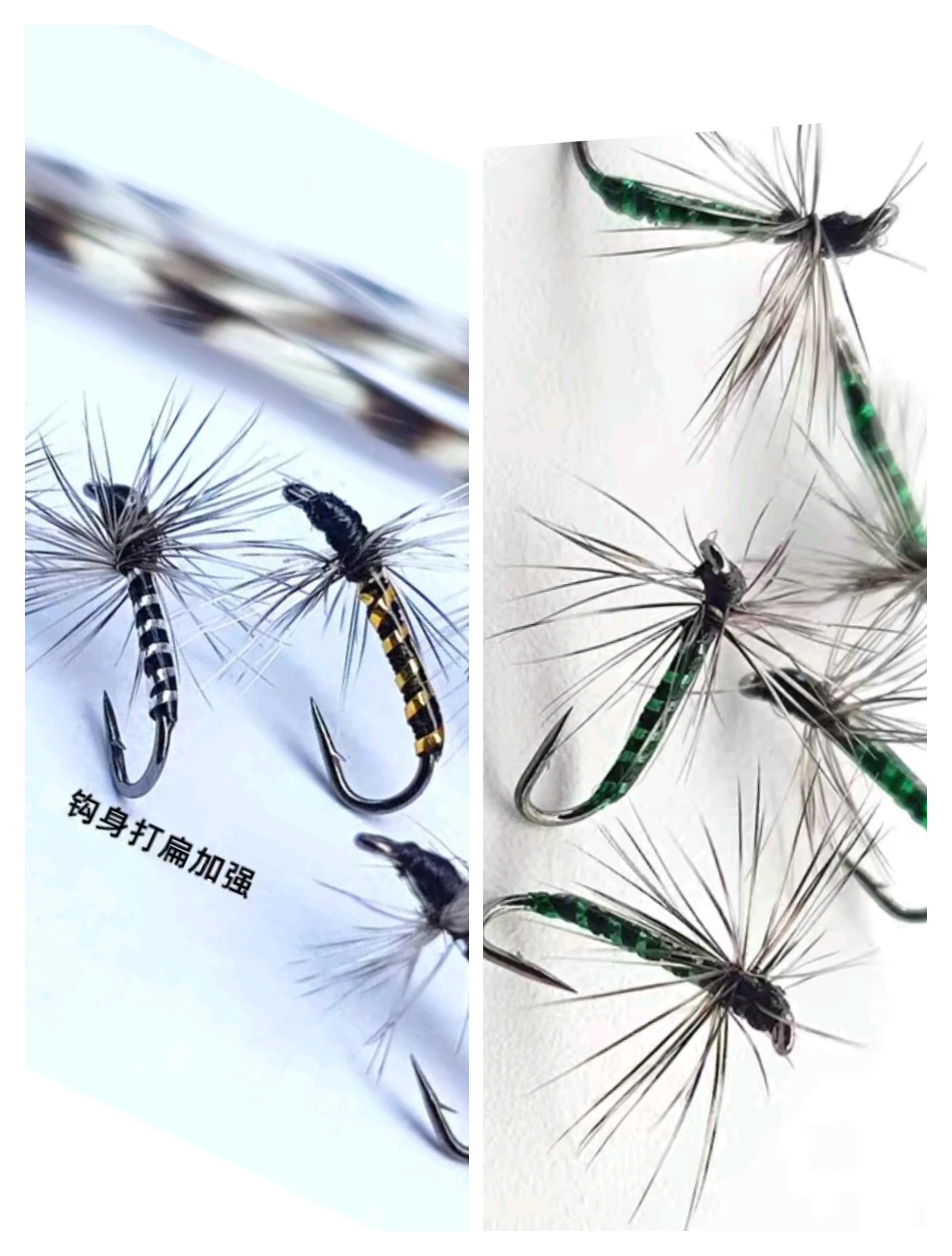 The new abdominal-legged mosquito fish comes in 4 colors. It is tied with a plume and uses a high-carbon steel flat-bent bare hook! The coating has bright colors, no unraveling, and is durable!