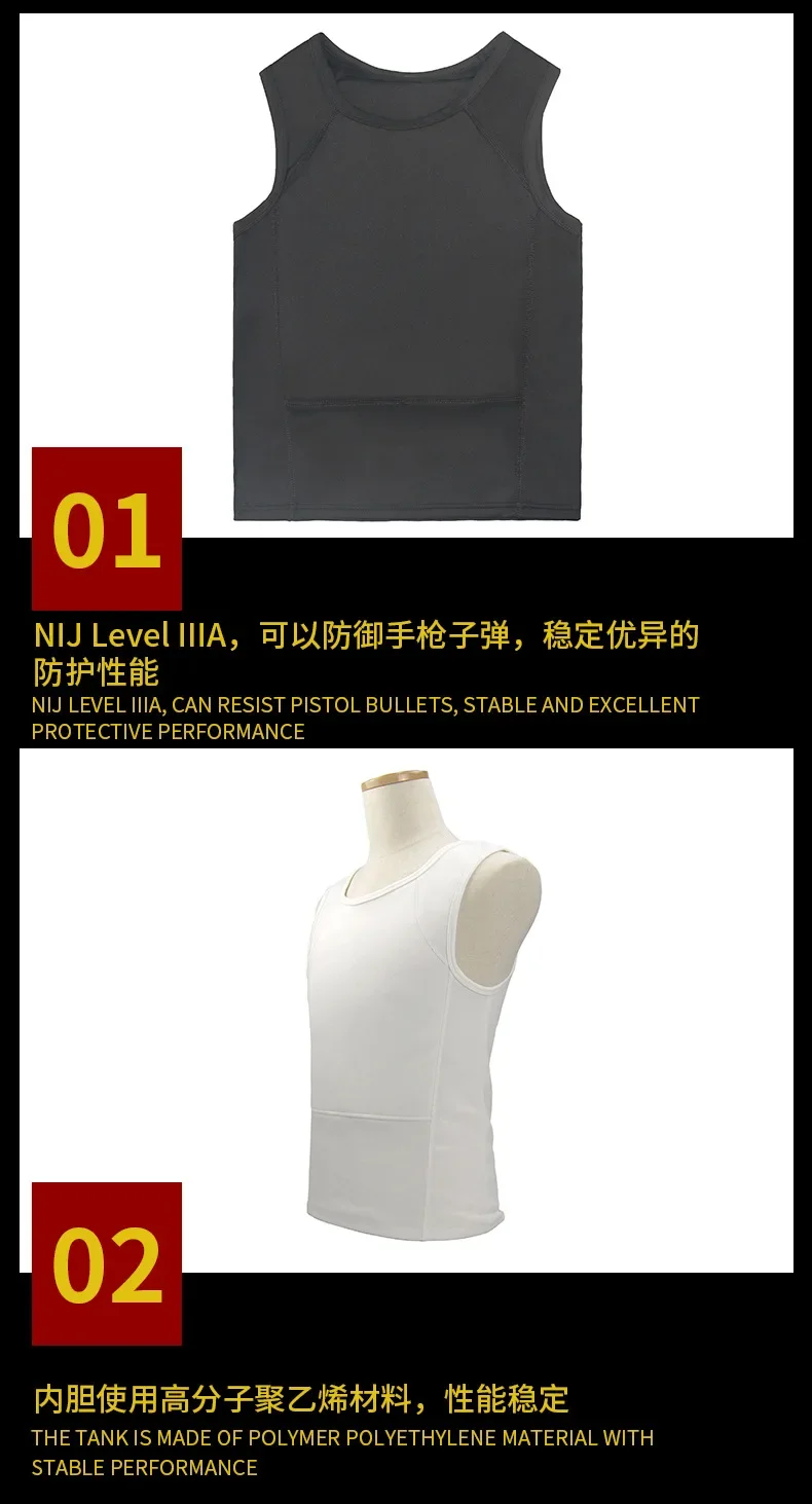 Chaleco a prueba de balas de nivel IIIA, ultracómodo, ligero, oculto, interior oculto, camiseta suave antibalas