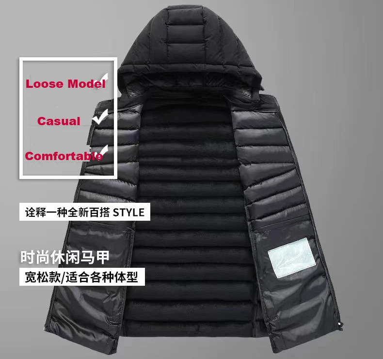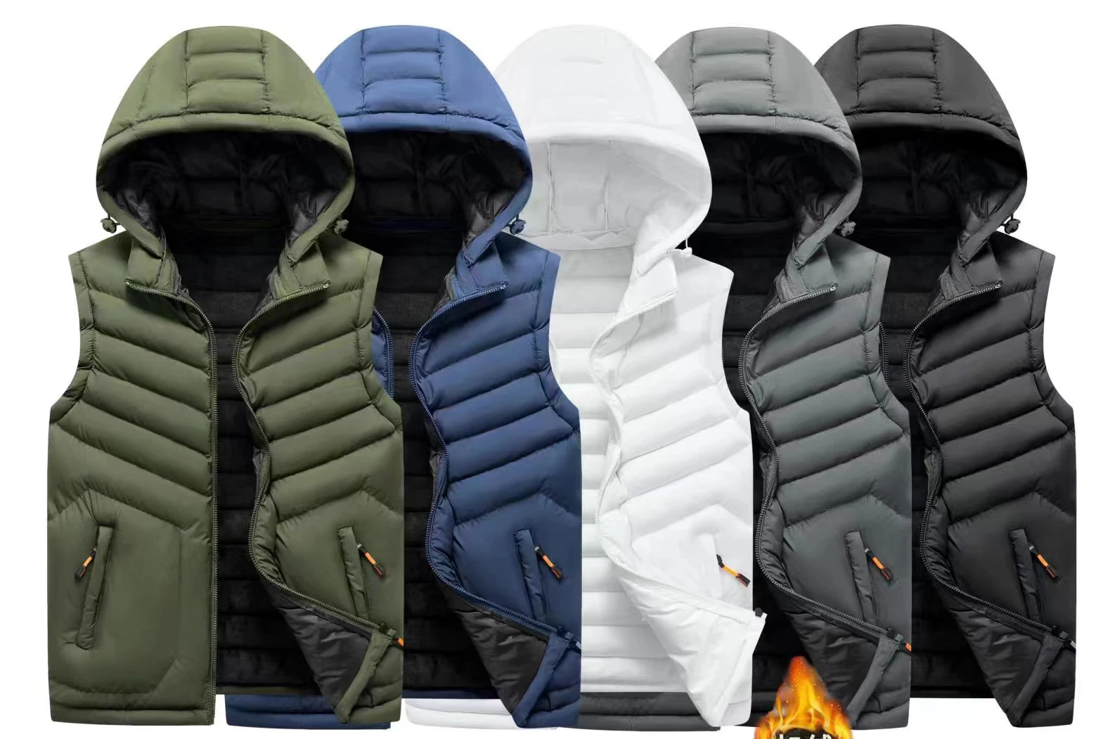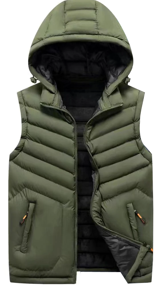 Chaleco acolchado de algodón suave para hombre, ropa de calle informal, cuello con capucha, para acampar, senderismo, senderismo, chaleco masculino, moda, otoño, invierno, 4XL