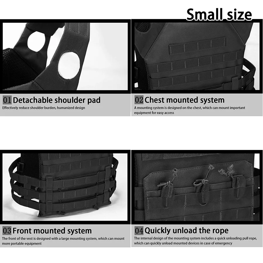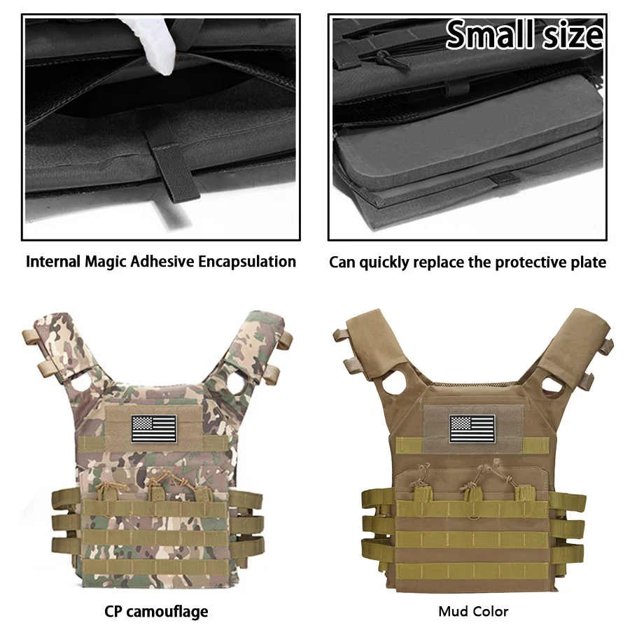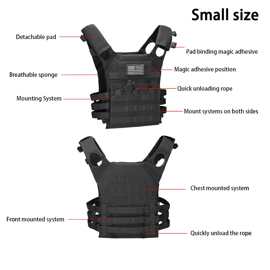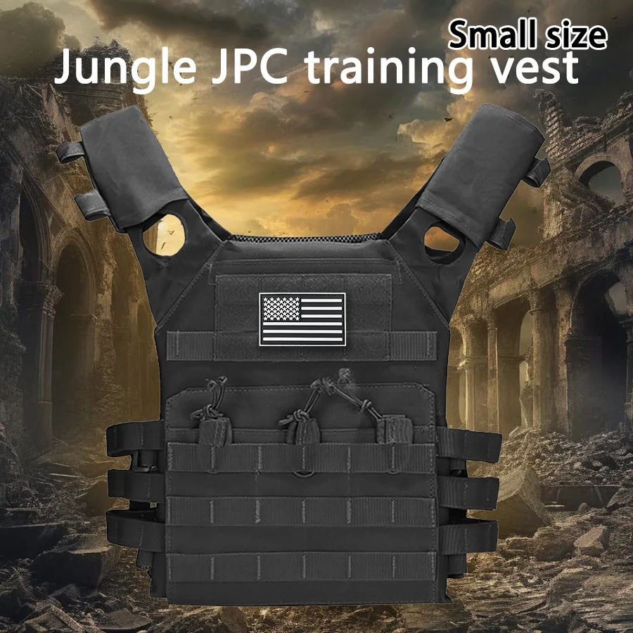 Chaleco de adiestramiento al aire libre MOLLE (incluido el emblema de la bandera de EE. UU.) con expansión conveniente, chaleco JPC ligero y multifuncional