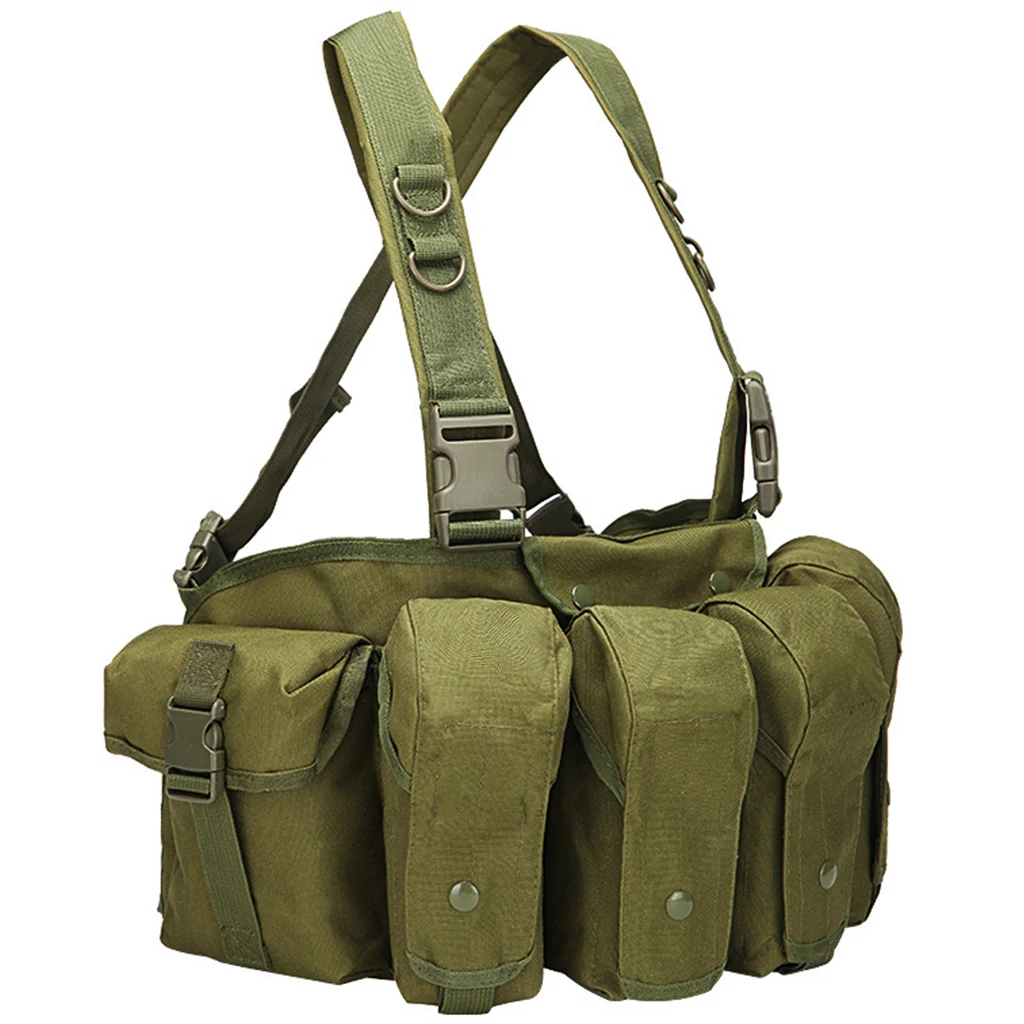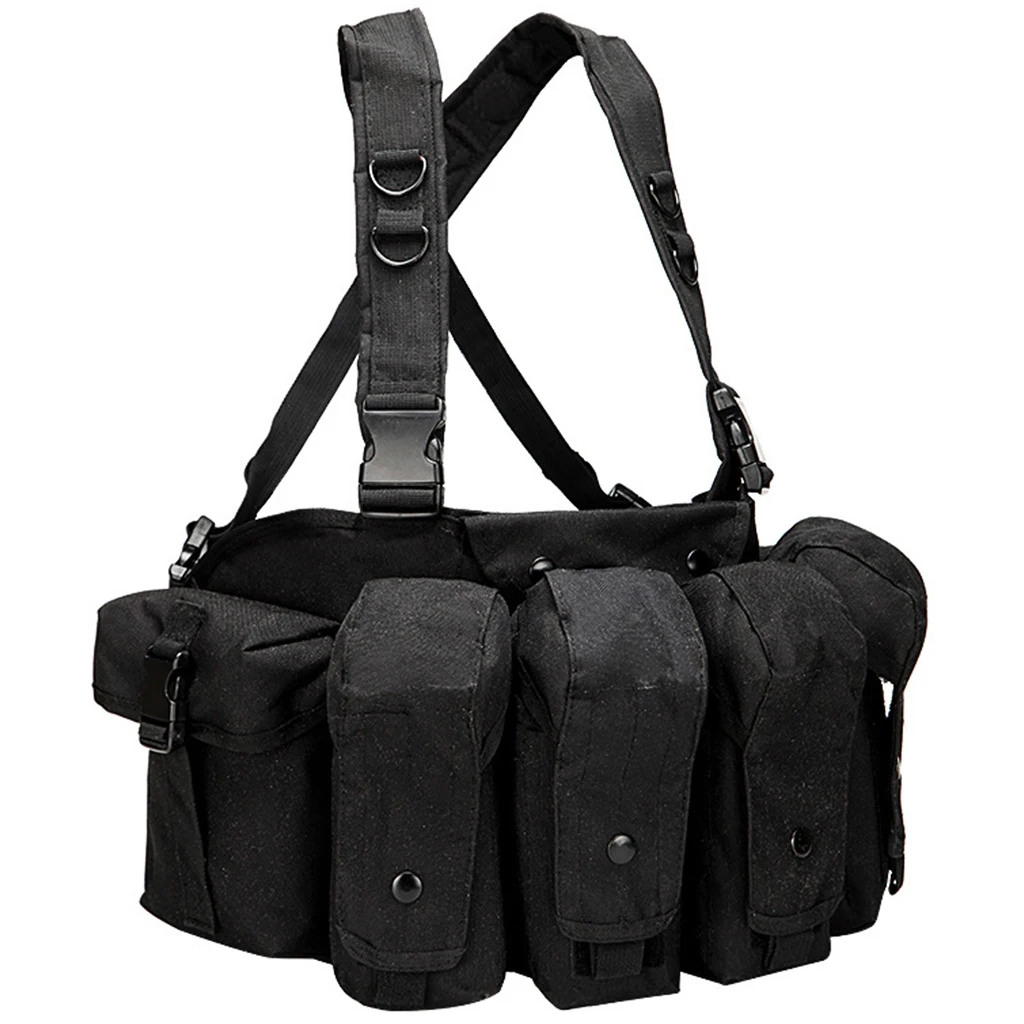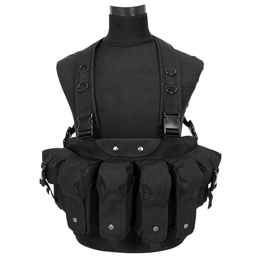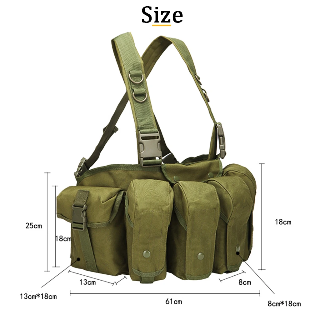 ➤ Gran Capacidad: 4 bolsas frontales para revistas AK, pueden contener hasta dos revistas AK cada una, lo que permite un total de 8 revistas. Dos bolsas misceláneas grandes montadas a cada lado de las bolsas de revistas y lo suficientemente grandes para una variedad de artículos como revistas vacías, herramientas, BBs, etc.