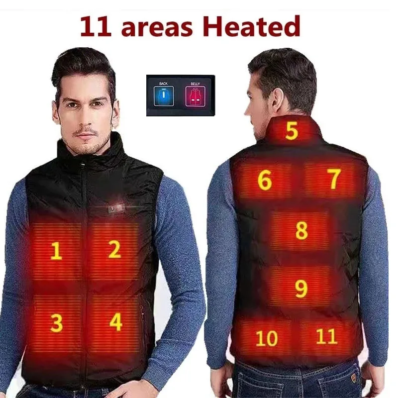 Chaleco calefactable para hombre, chaleco calefactable eléctrico de invierno para hombre con enchufe USB, pesca, caza, 9 áreas