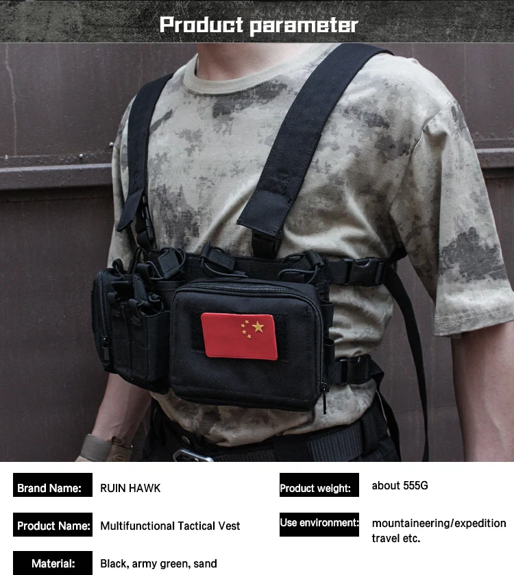 Chaleco de camuflaje especial para entusiastas de la caza al aire libre, correa de hombro multifuncional para entrenamiento de campo Molle, pecho colgante táctico