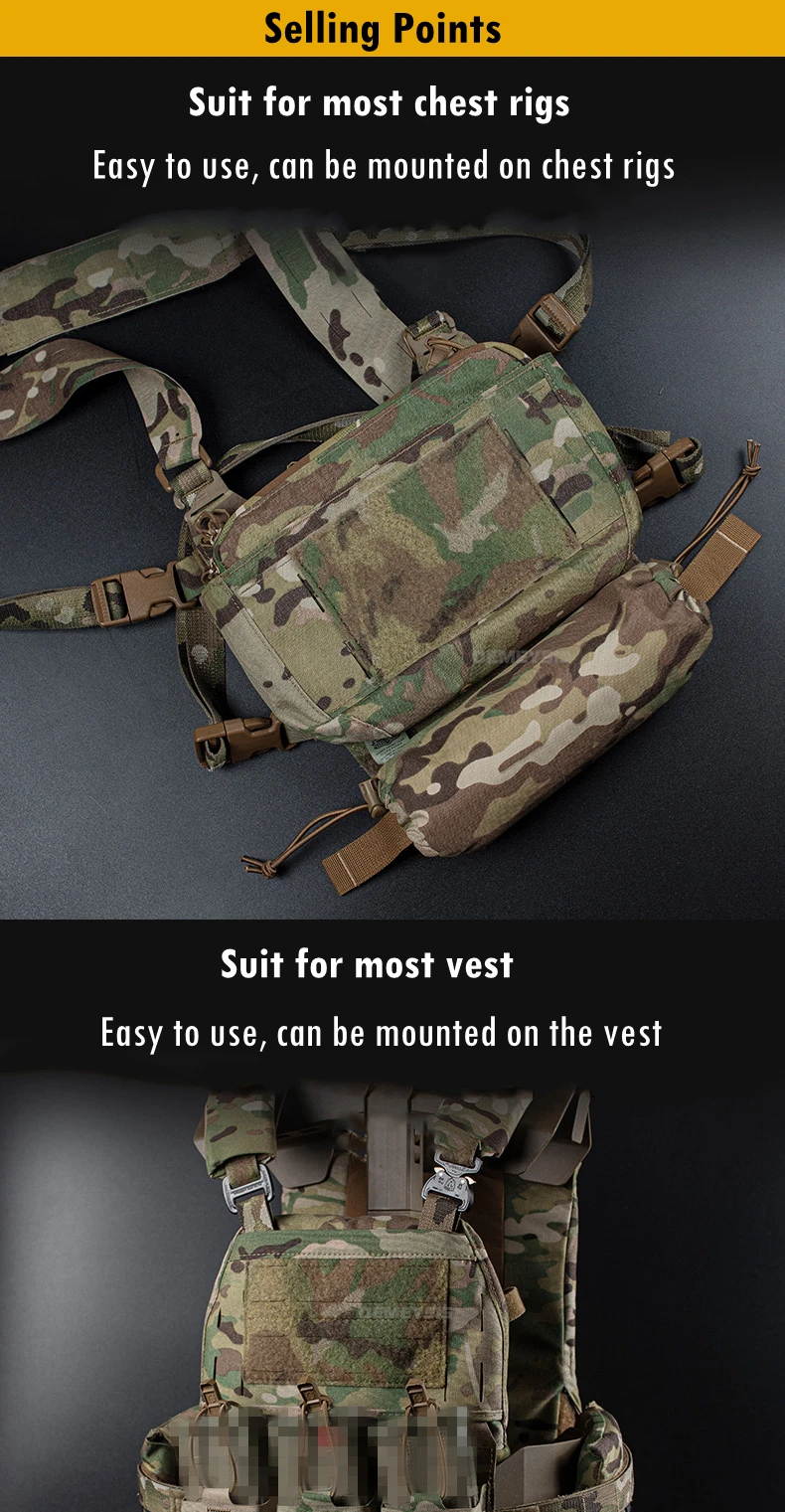 🔗 MOLLE universal – Se adapta a todos los chalecos/equipos de pecho al instante