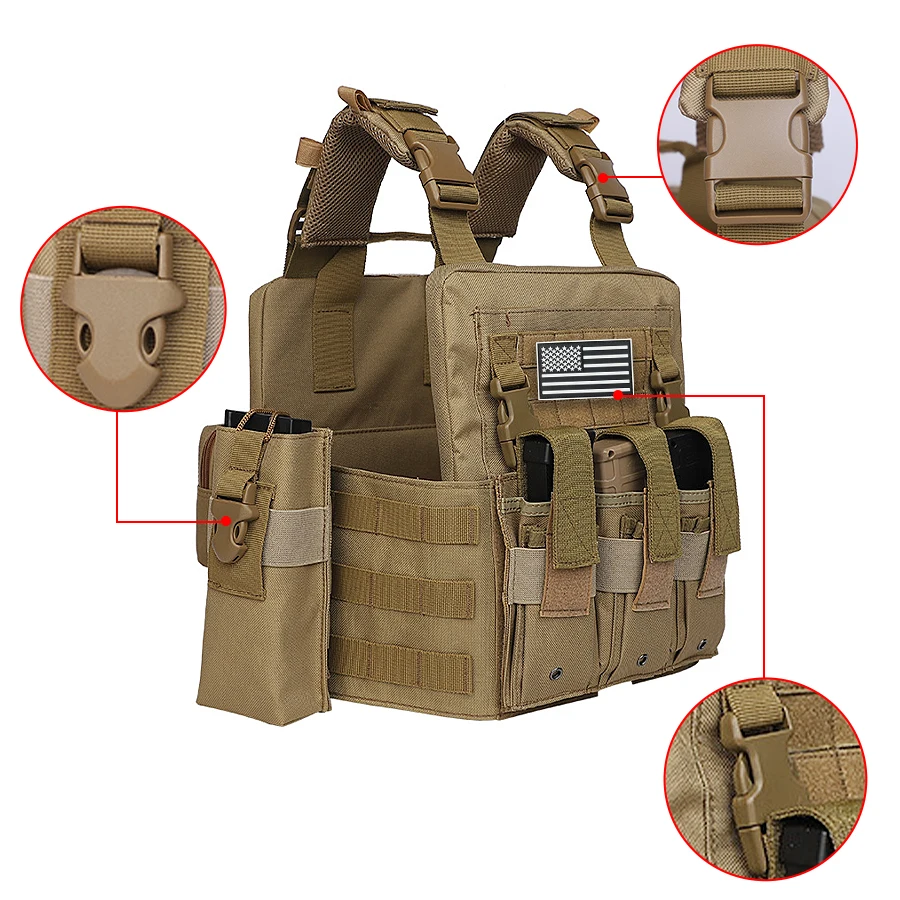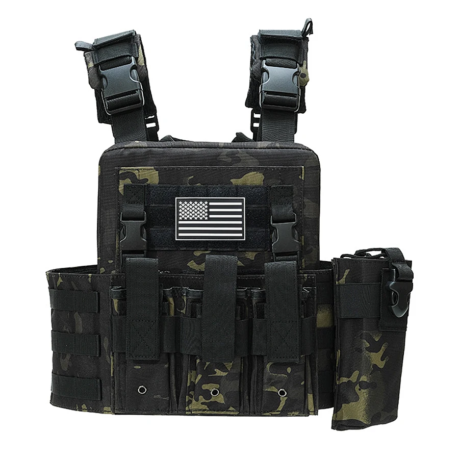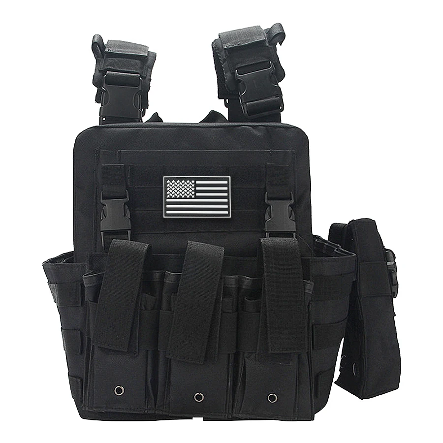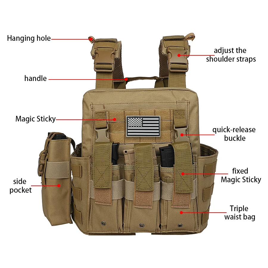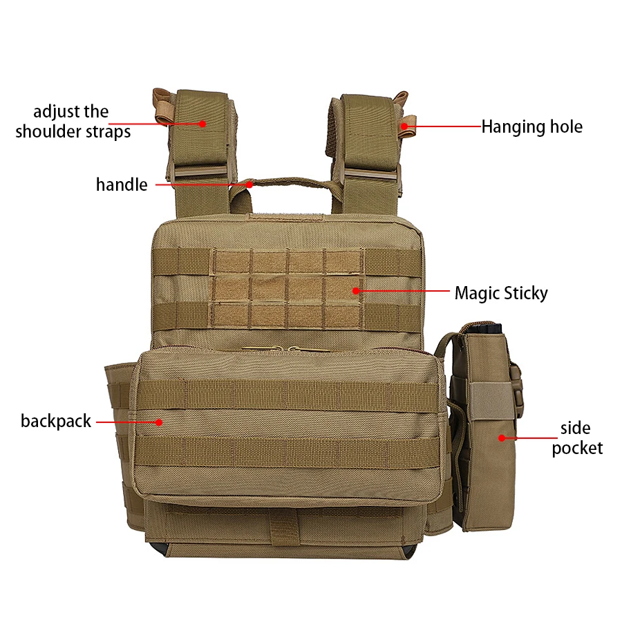 Chaleco de caza con bolsa triple multifuncional, material resistente a desgarros y al desgaste, expandible y desmontable