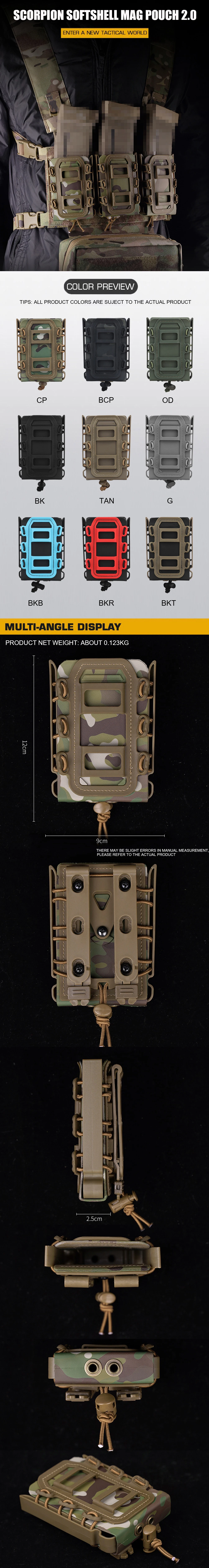 5,56mm 7,62mm Fast Mag Pouch Molle Belt Chaleco de caza Adjuntar Scorpion Soft Magazine Pouch 2,0 para AK AR M4 .308 Rifle Pistol Mag