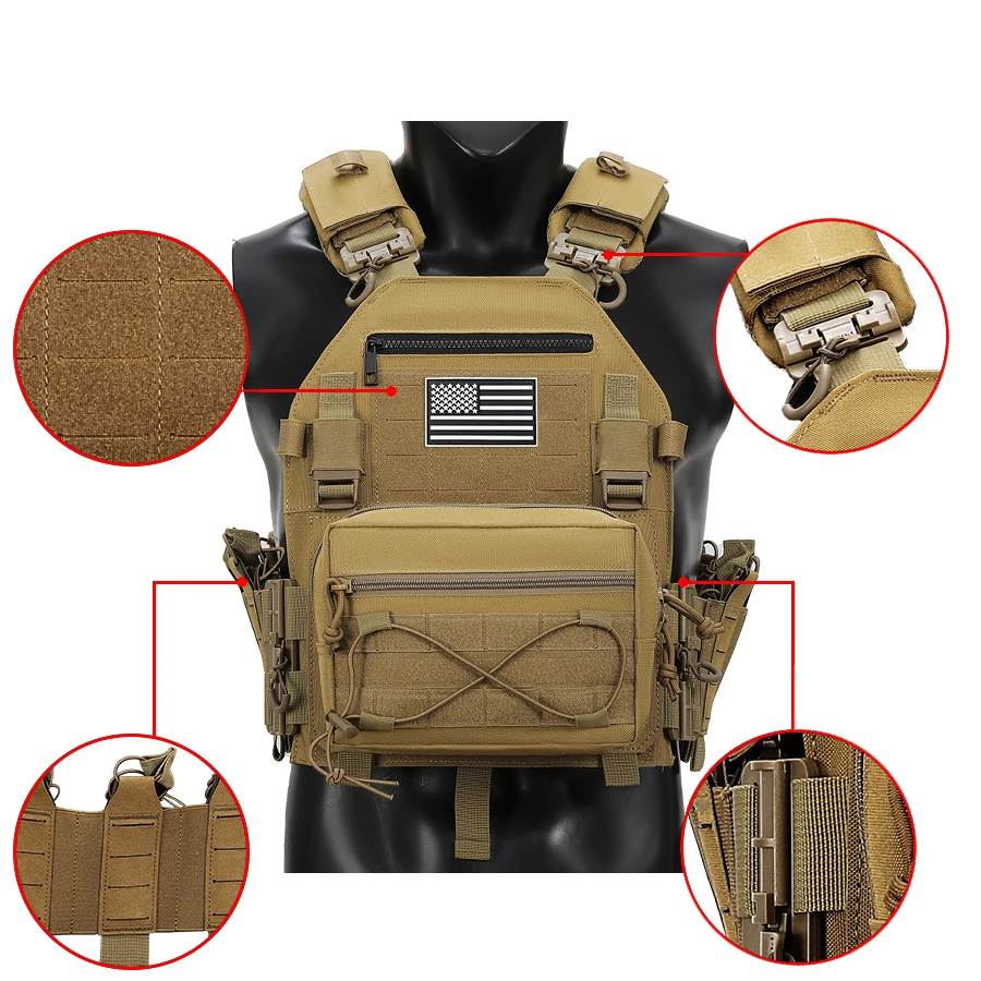 Chaleco de caza desmontable rápido para hombros y cintura con bolsa de equipo de gran capacidad que cuelga el sistema MOLLE frontal