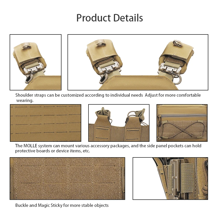 Bolsa de utilidad MOLLE AC-01, correas de retención elásticas, orificio de drenaje cortado con láser, aparejo de pecho/almacenamiento de parches para caza, Camping al aire libre