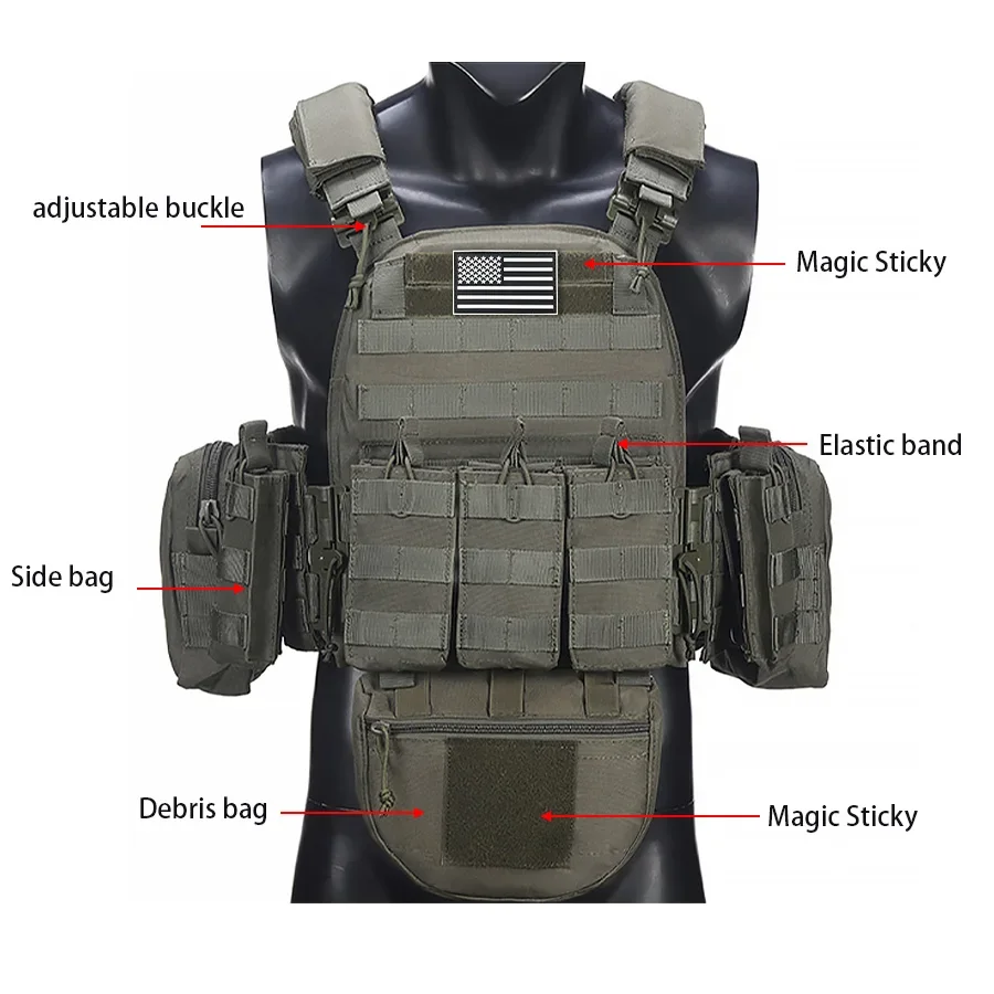 El chaleco de caza de siete piezas de liberación rápida para hombros y cintura utiliza materiales resistentes a desgarros y resistentes al desgaste