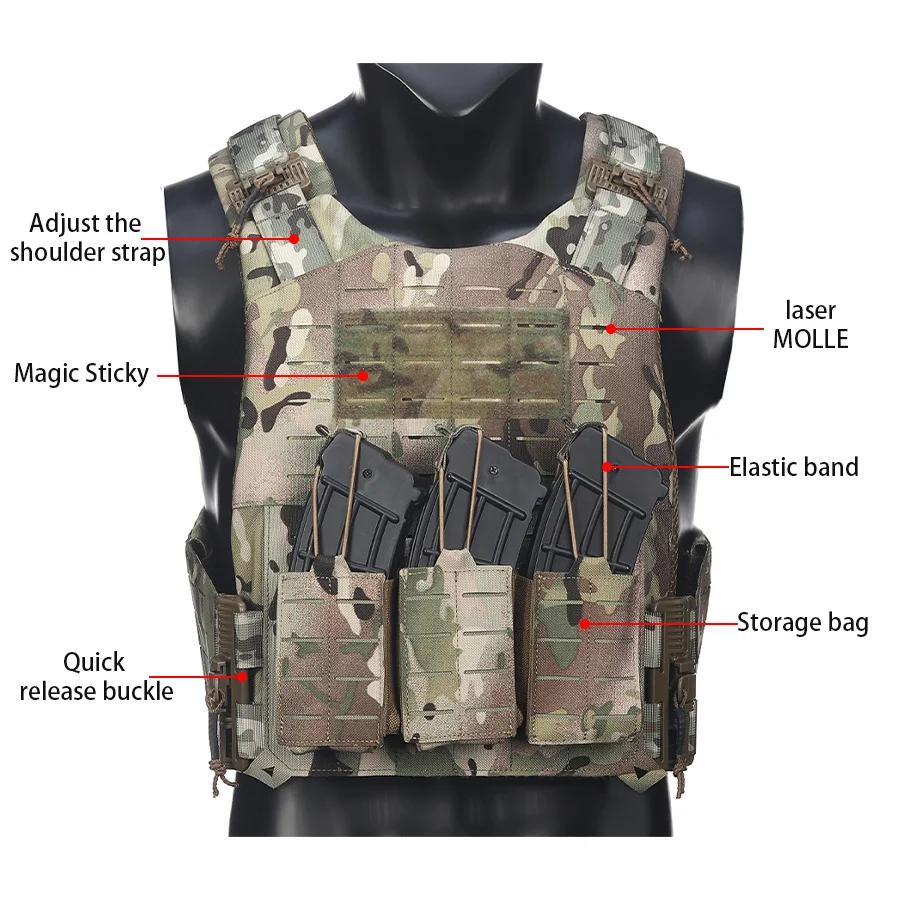 Chaleco de caza con sistema MOLLE láser multifuncional, bolsa de equipo triple ligera, chaleco de aventura