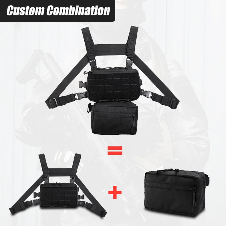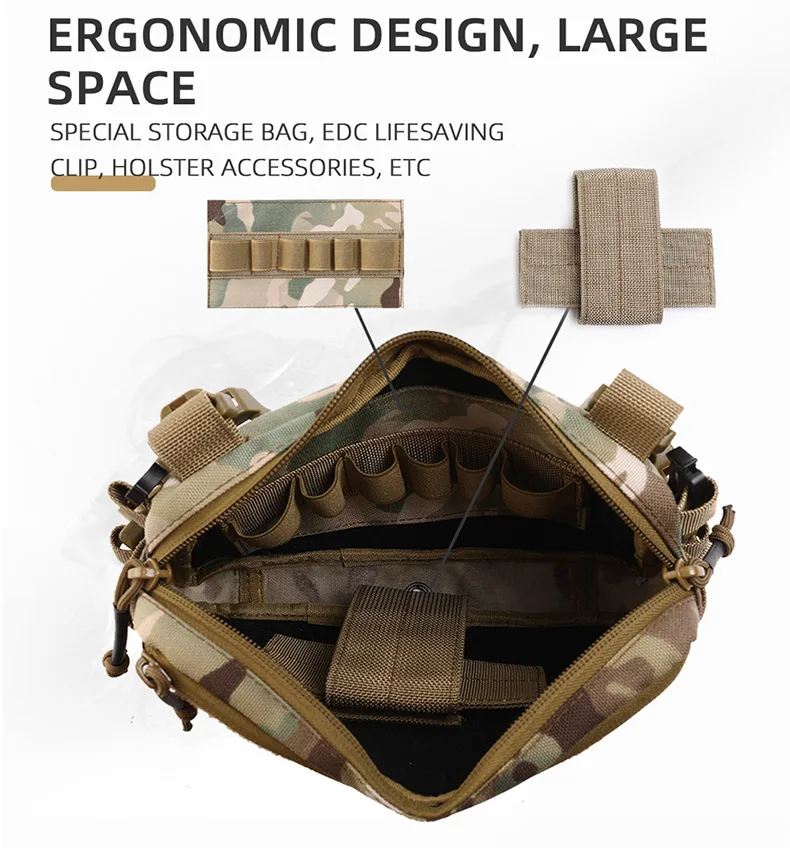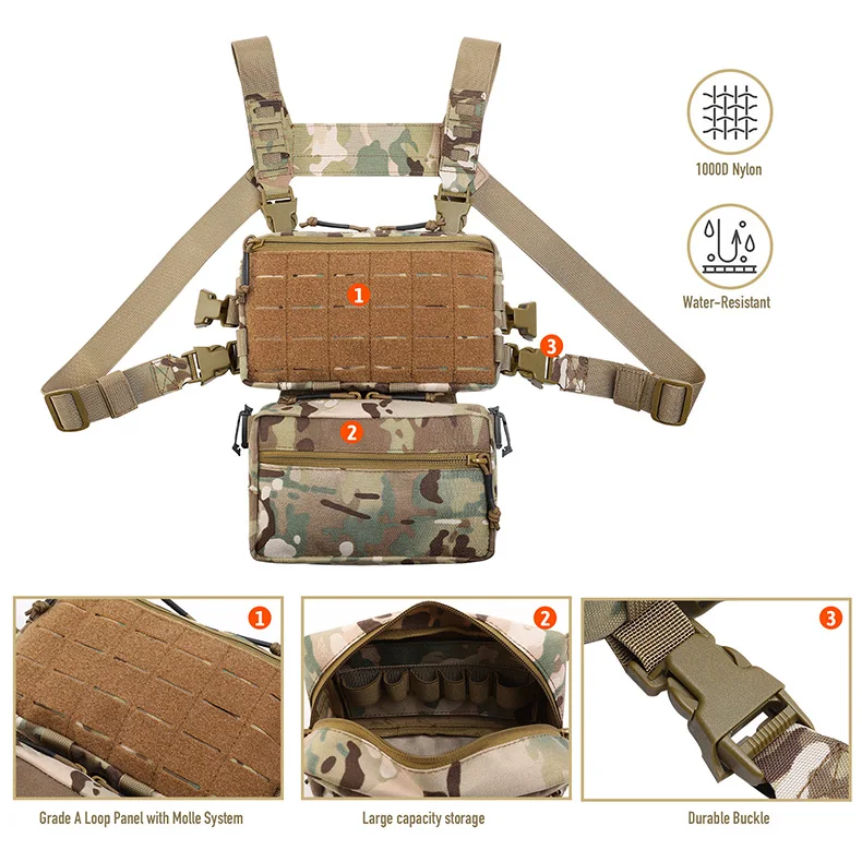 Uso: chaleco táctico, bolso de cabestrillo, bolsos de cintura, bolsos cruzados de un solo hombro.