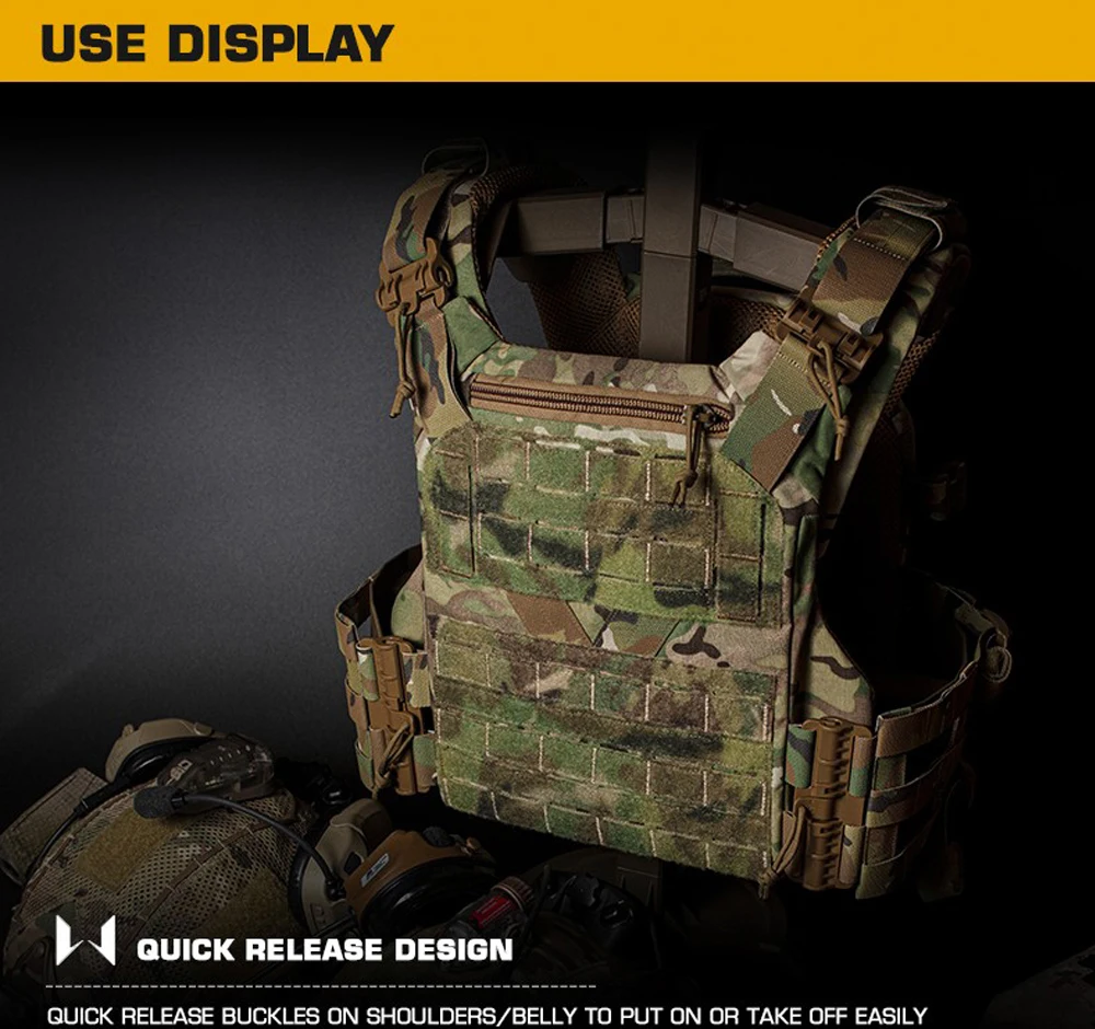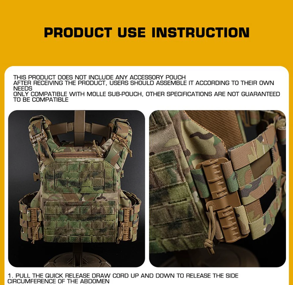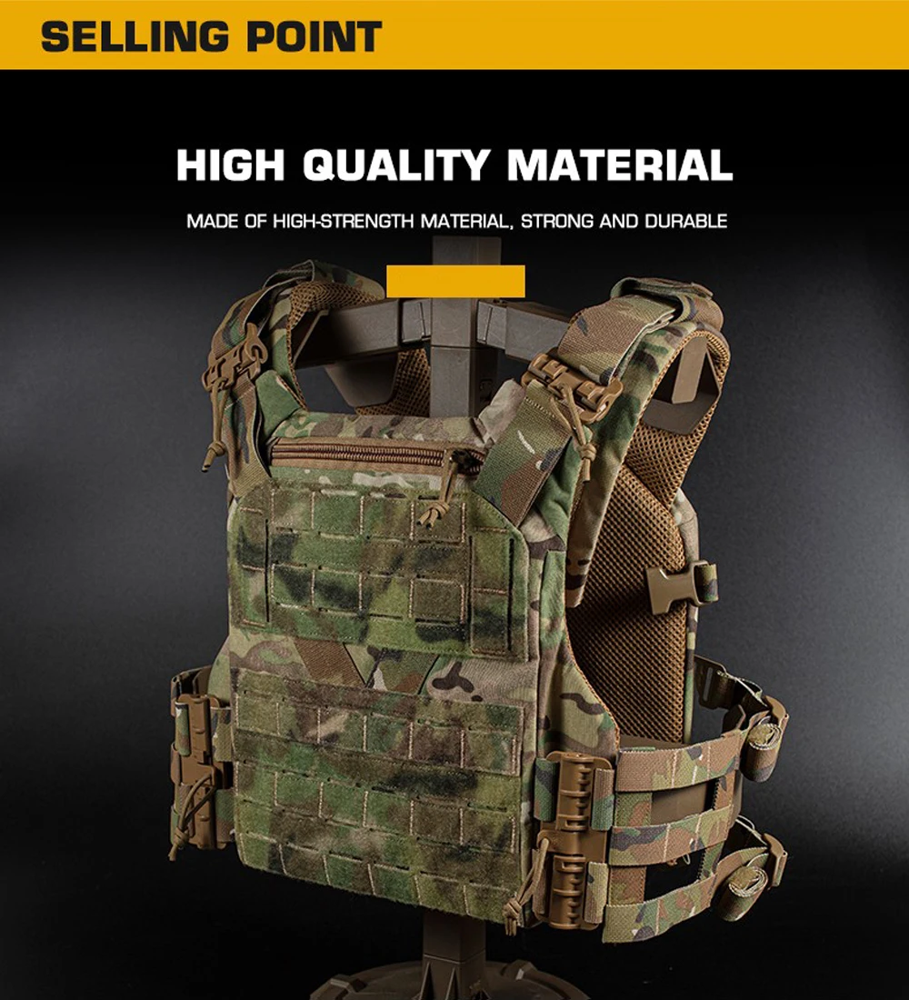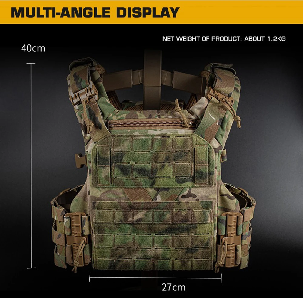 K19 Chaleco de caza de tamaño completo, portador de placa MOLLE, fajín ajustable de liberación rápida, chaleco táctico de entrenamiento de combate Airsoft