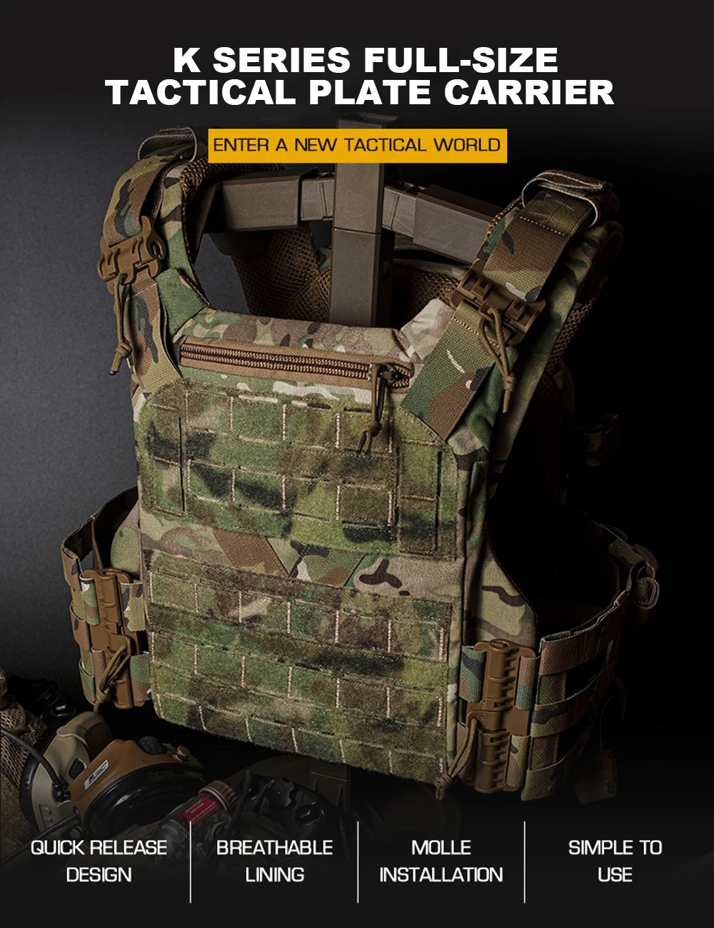 Chaleco de caza de tamaño completo serie K Portador de placa MOLLE Chaleco táctico de entrenamiento Airsoft de tiro ajustable de liberación rápida
