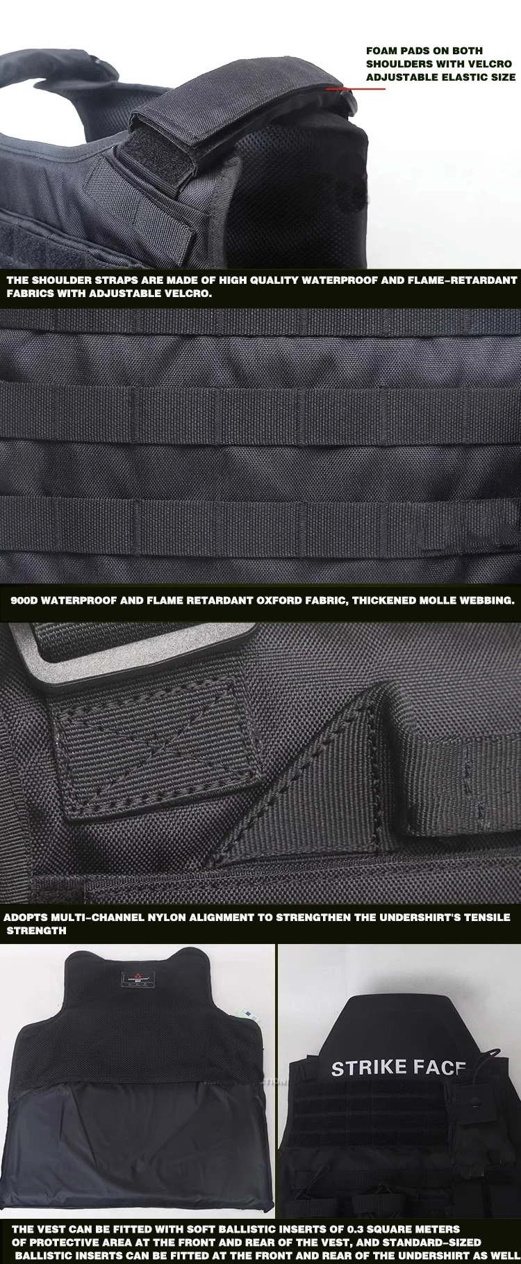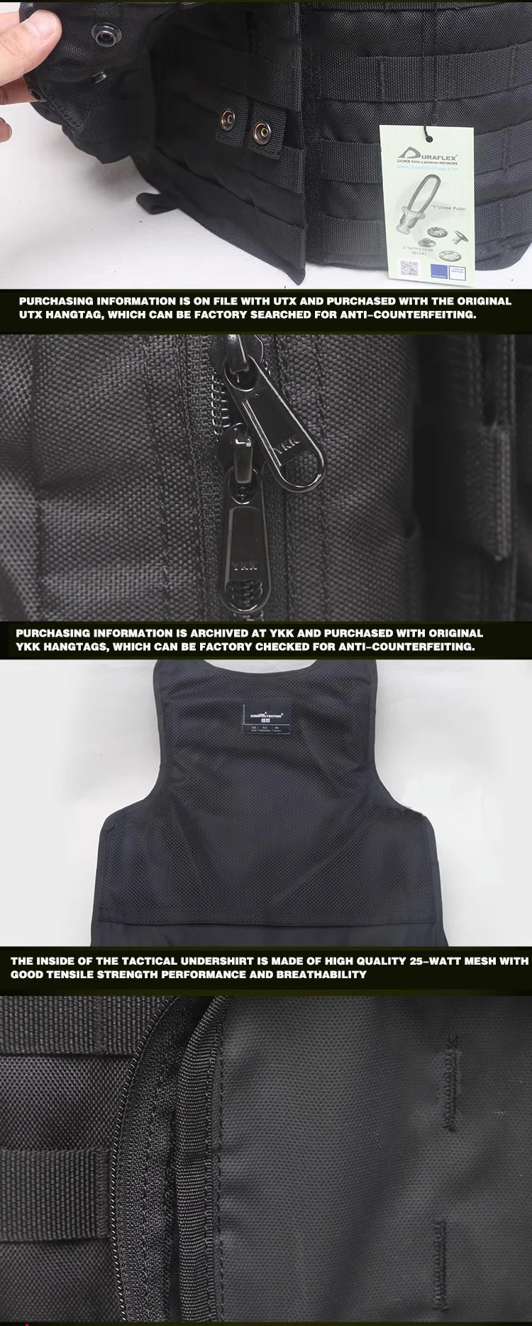 Descripción del productoEsta camiseta interior táctica está diseñada para combates reales, de acuerdo con los estándares NIJ, el forro interior se puede instalar 0,3 metros cuadrados de área protectora y forro antibalas.La parte delantera y trasera externa se pueden instalar una variedad de inserciones antibalas de nivel anti-D, la camiseta interior está hecha de telas impermeables y retardantes de llama 900D, se utilizan hebillas de paquetes de accesorios en la marca UTX de los Estados Unidos (112) No.La firmeza de 4 hebillas es muy alta, los productos utilizados en la cremallera que utiliza la durabilidad de la marca japonesa YKK son buenos, la tela interior está hecha de 25 vatios de tela de malla con alta resistencia y la transpirabilidad es buena.Otros materiales auxiliares como correas, cuerdas Oxford, velcro, etc.Todos están hechos de materiales de alta calidad con mano de obra fina.