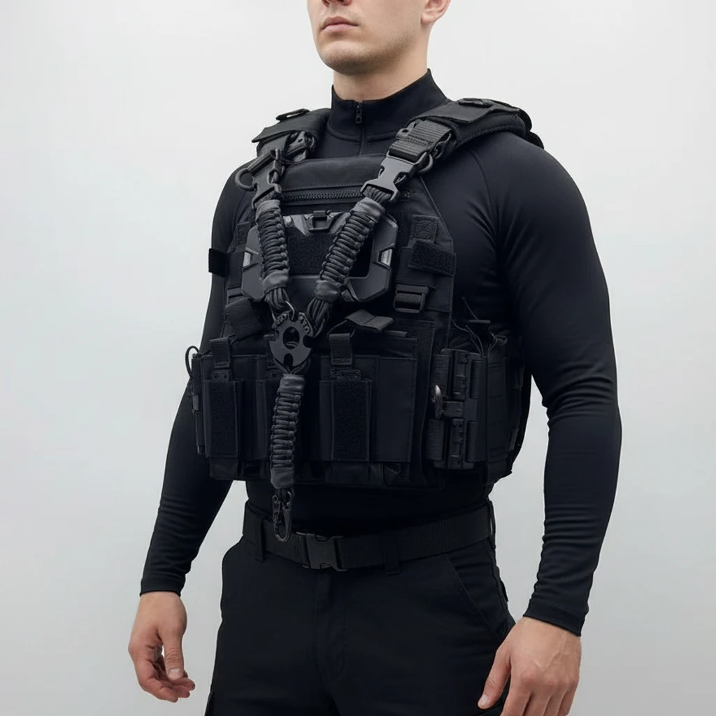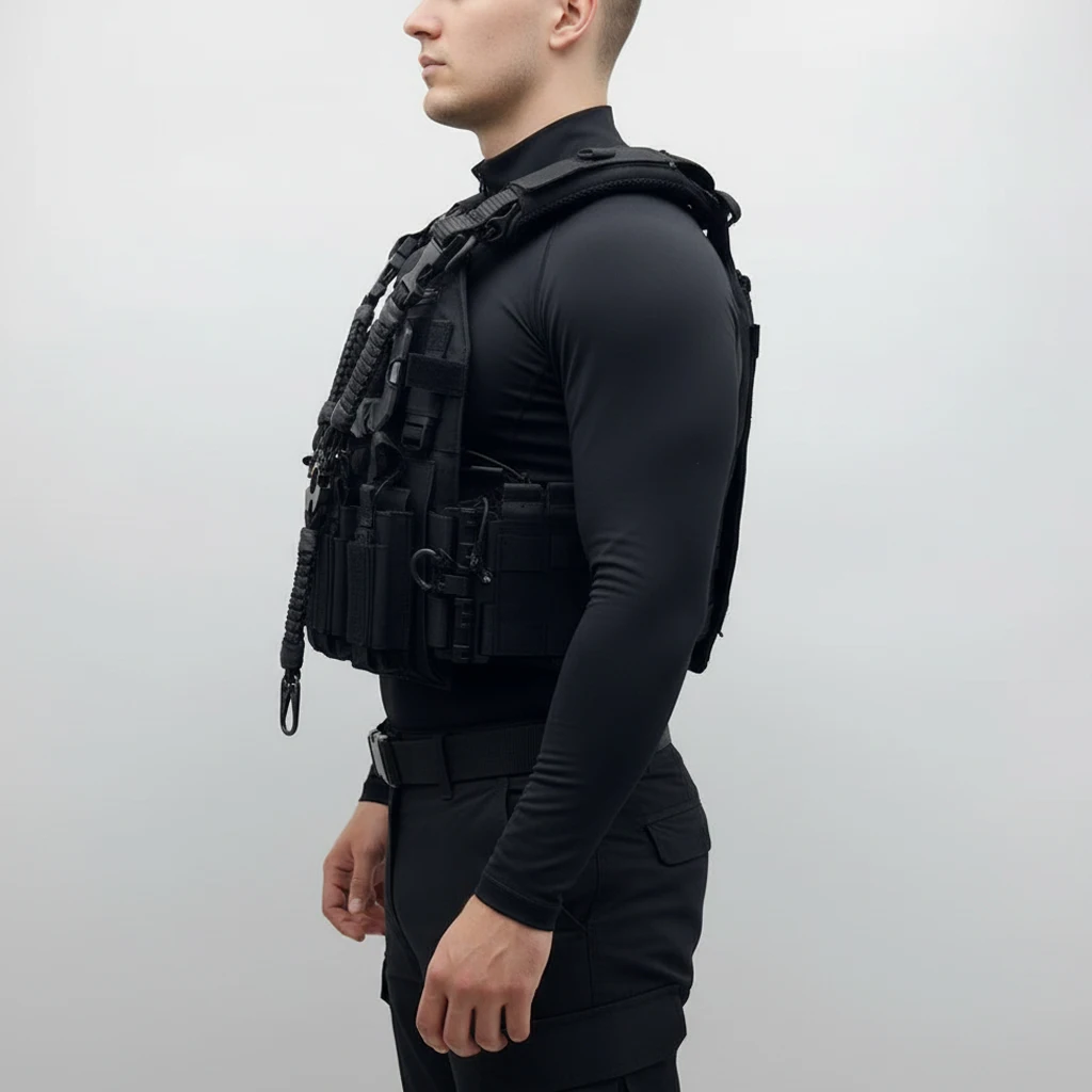 Chaleco de entrenamiento de liberación rápida, desmontable y ajustable, transpirable, resistente a desgarros y duradero, con tres bolsas para revistas.