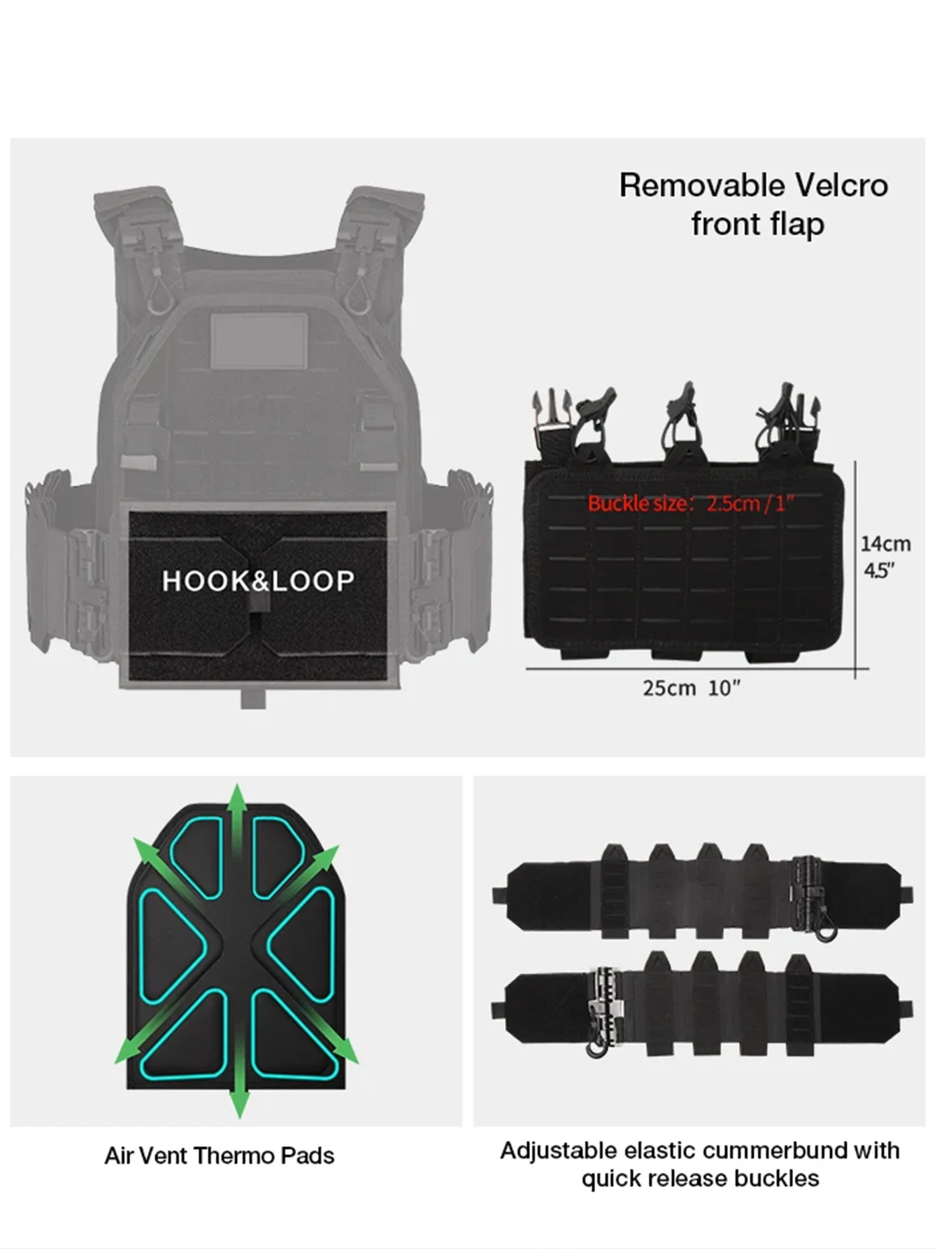 Chaleco de entrenamiento Molle ligero, 1000d, impermeable, resistente a la abrasión, resistente al desgarro, para exteriores