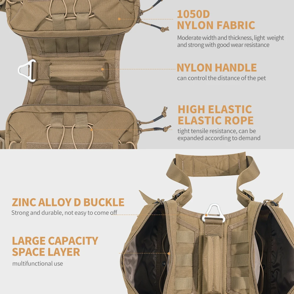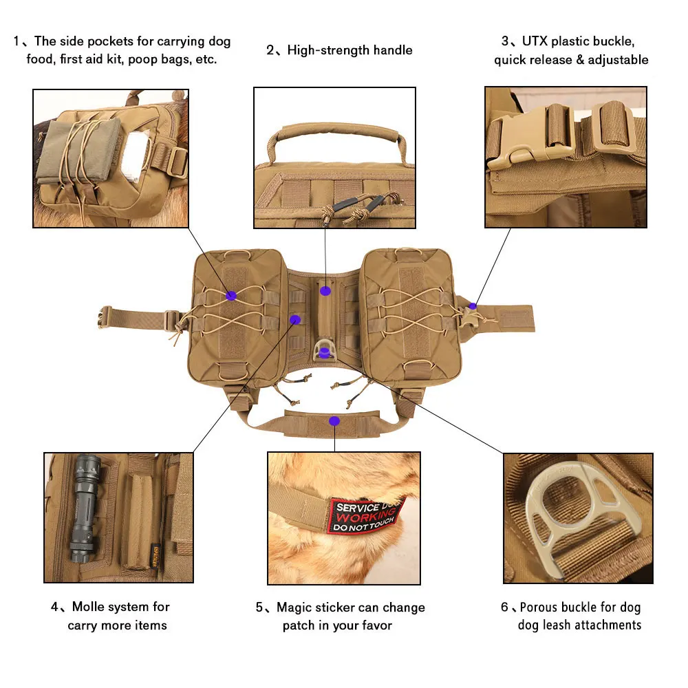 Chaleco de entrenamiento táctico con bolsa lateral Molle para perro, mochila con arnés ajustable, excelente ELITE SPANKER