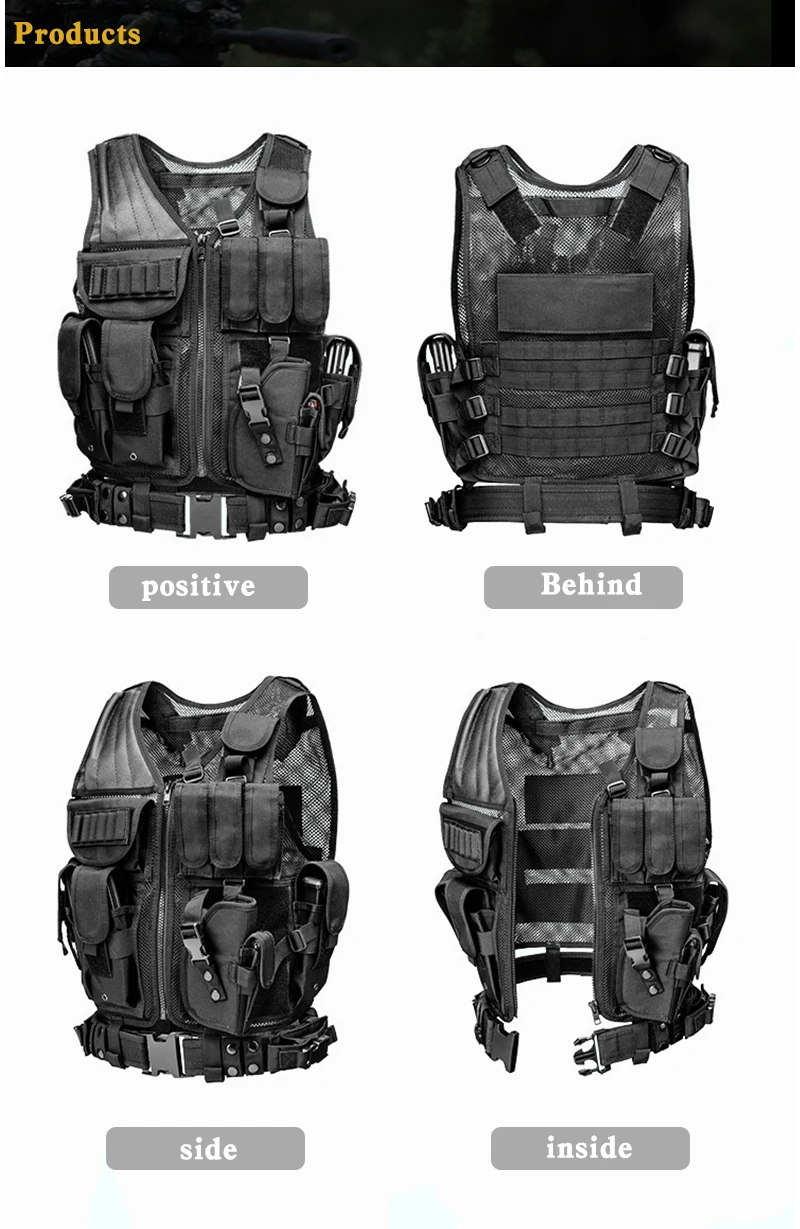 Chaleco militar para equipo táctico, chaleco Molle de caza Airsoft para