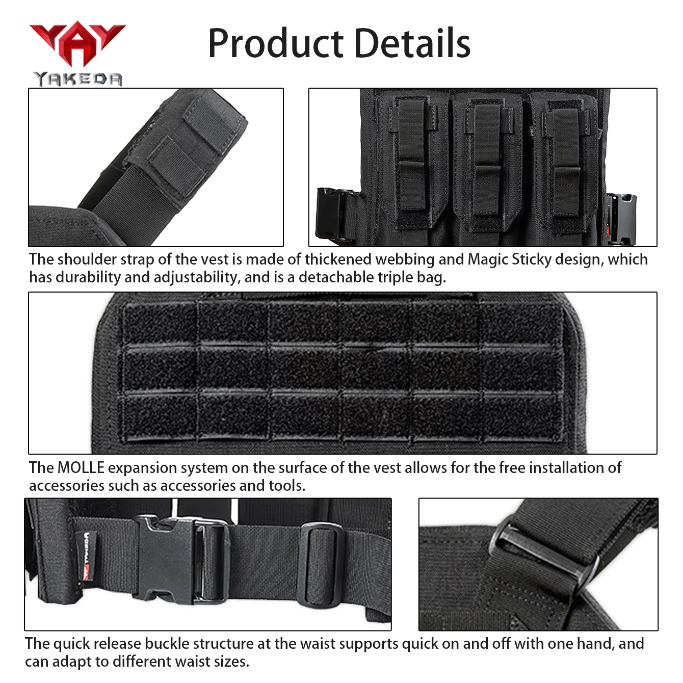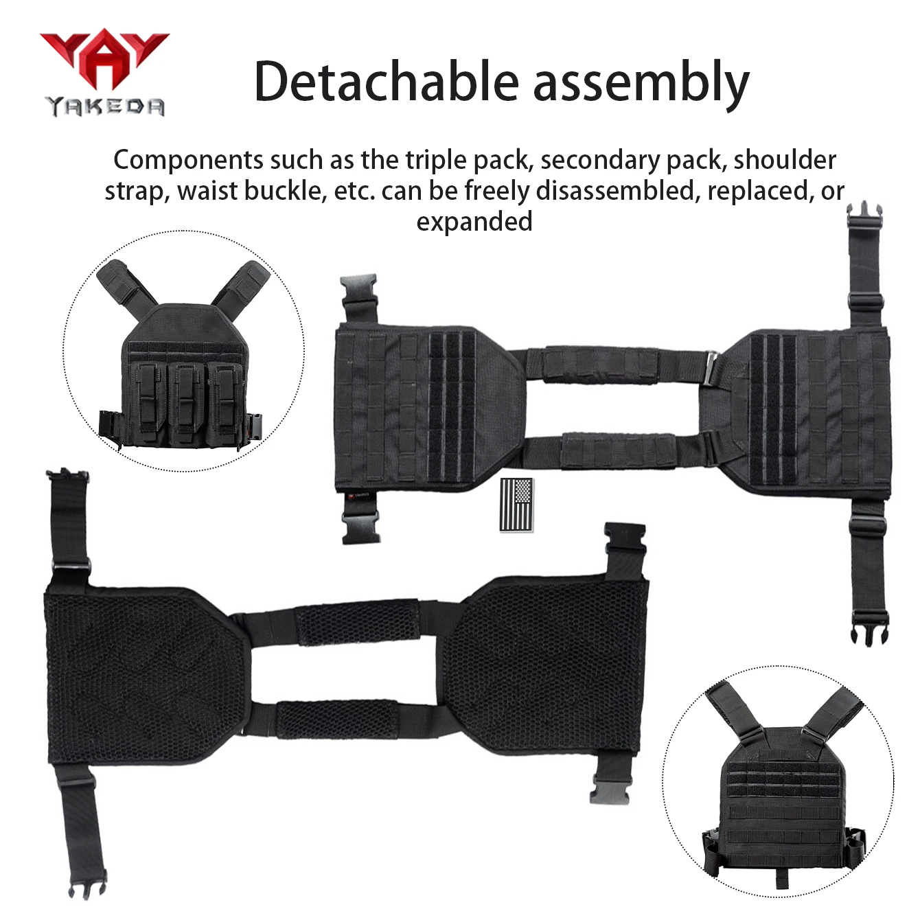 Chaleco ligero YAKEDA con malla 3D, chaleco con sistema de expansión Molle con hebilla de liberación rápida transpirable