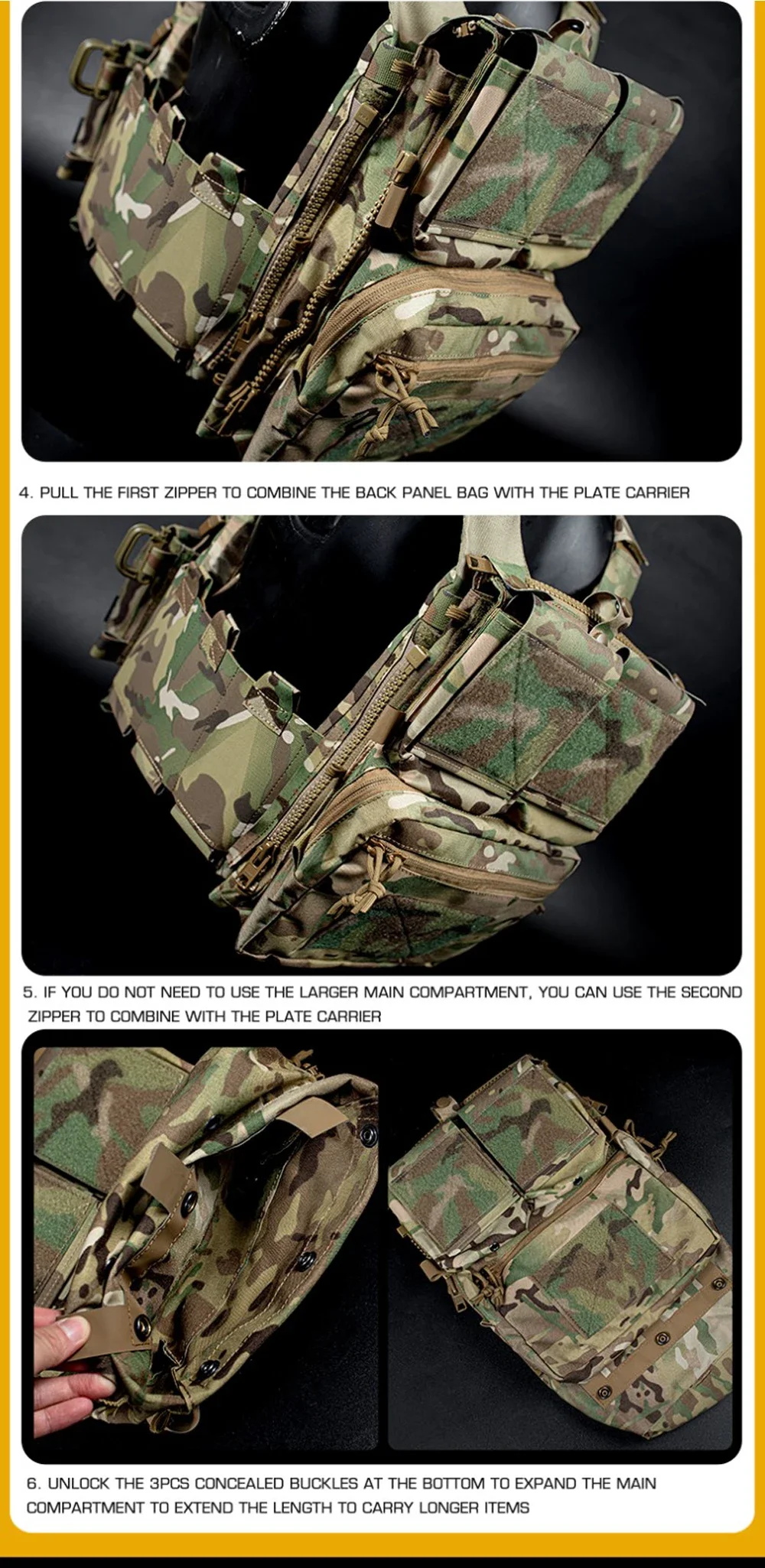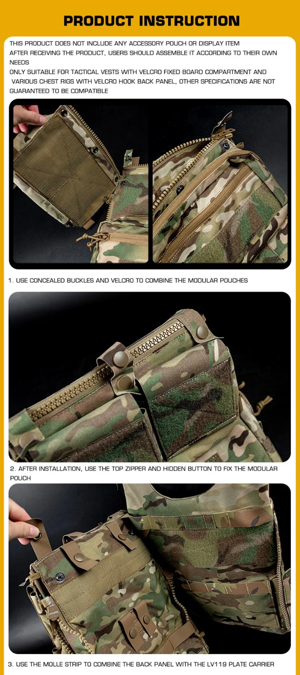 Chaleco LV119 para exteriores, portador de placa, mochila, Panel trasero de asalto, núcleo para Mag/Map/almacenamiento de agua, bolsa grande, equipo Airsoft de caza