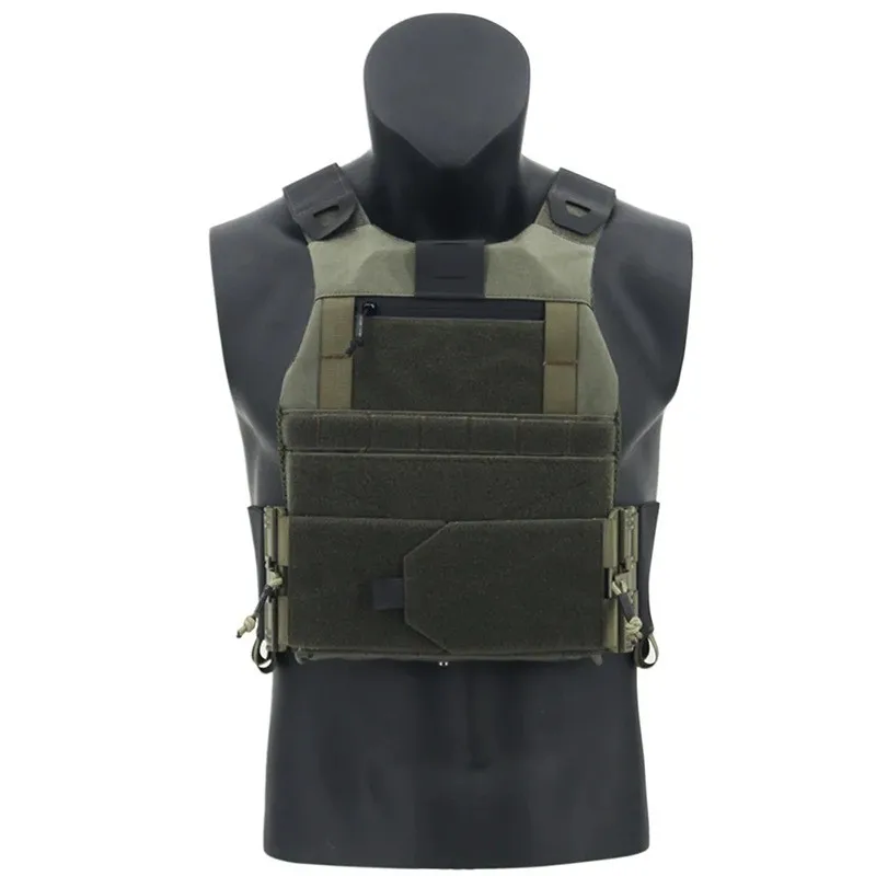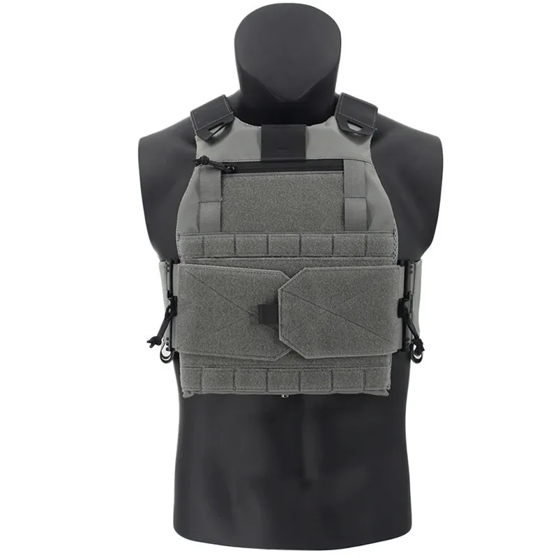 Especificaciones: El panel frontal del mosquetón para accesorios permite añadir insignias 01/02/03 u otras bolsas con paneles de gancho.Chaleco táctico de perfil bajo: está diseñado para ajustarse cómodamente a la parte superior del cuerpo y puede ocultarse debajo o usarse sobre una chaqueta.Bolsa de almacenamiento frontal: cerrada con cremallera, puede transportar mapas/otros equipos pequeños.3/4 ranuras elásticas en cada lado: pueden acomodar cargadores 5,56/7,65 para una extracción rápida.Espalda de malla transpirable: ayuda a liberar la humedad