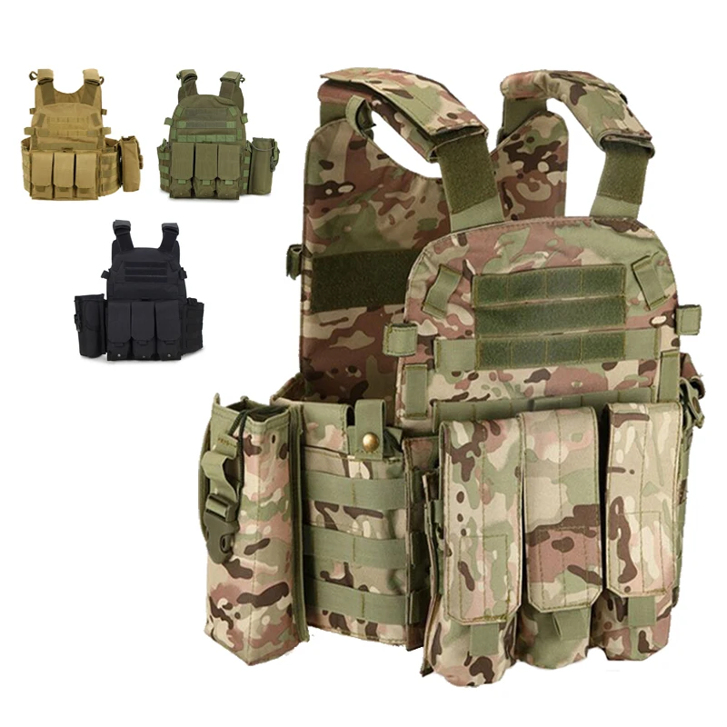 Tipo de artículo: Chaleco táctico Color: Negro/Verde/bronceado/CP Material: Tela Oxford 600D Características: Tela Oxford 600D rígida garantizada para una máxima durabilidad. El bolsillo interior de hidratación de malla sostiene la vejiga de agua y también aumenta la ventilación. Circunferencia ajustable para adaptarse a la mayoría de los tipos de cuerpo. Correas molle resistentes para fijación adicional. Las correas de hombro tienen cinta de sujeción diseñada para ajustar la longitud de la correa de hombro según lo requiera el usuario.