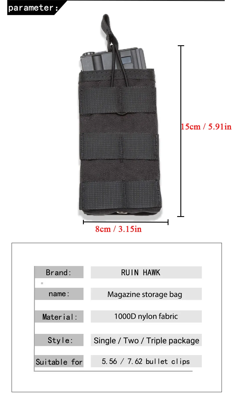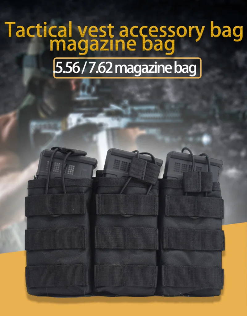 Chaleco táctico militar MOLLE de caza, accesorios, bolsa de cartucho triple, nailon Paintball Airsoft, bolsa de revista simple/doble