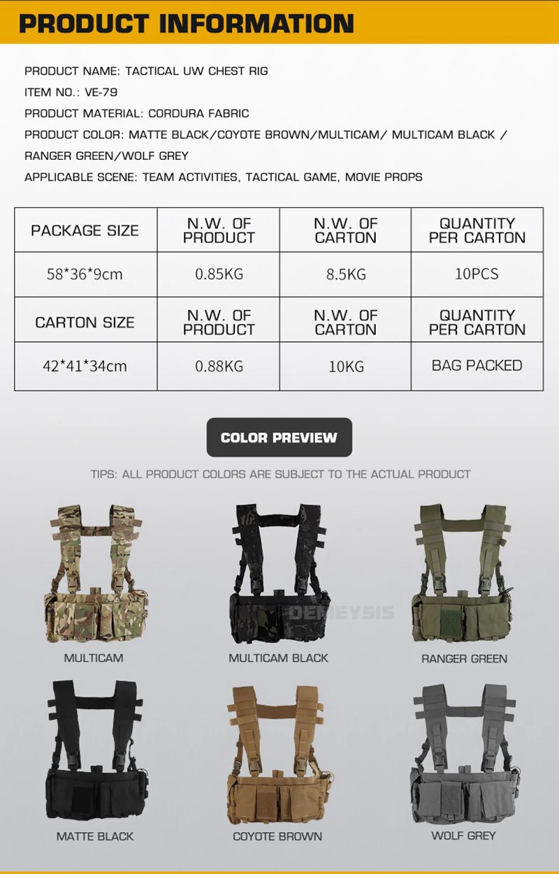 Chaleco de pecho de caza Molle para entrenamiento de combate, equipo de aparejo de pecho, paquete de tiro, Airsoft Wargame, chalecos tácticos, bolsa