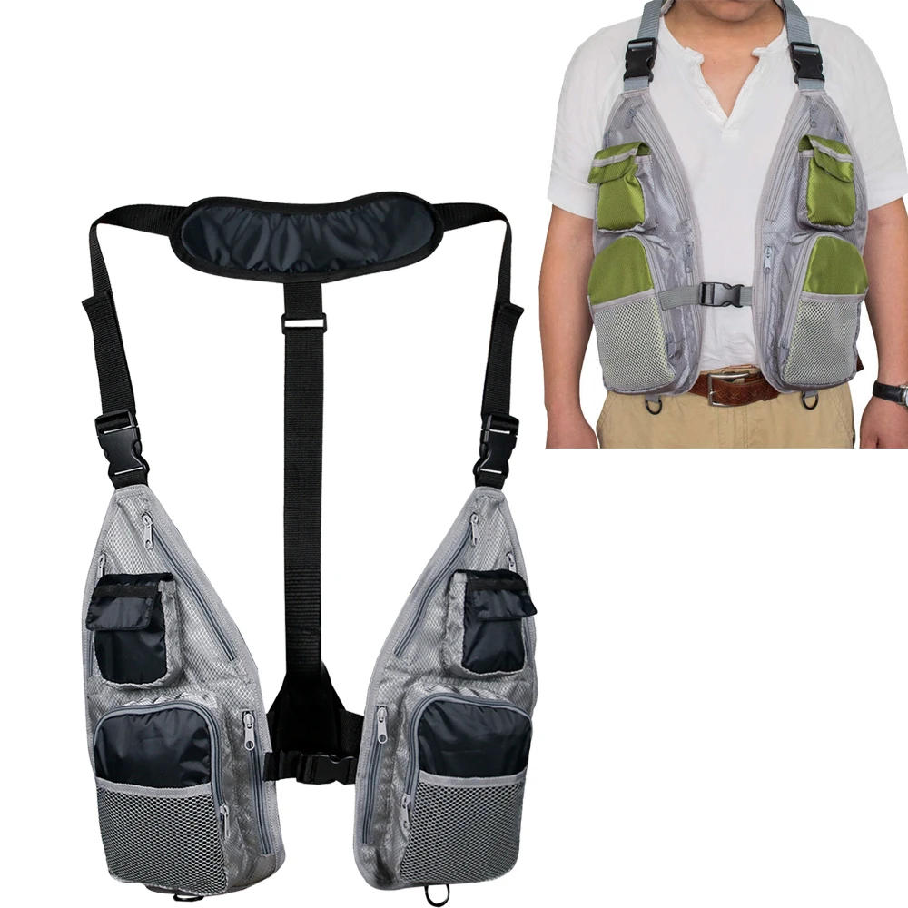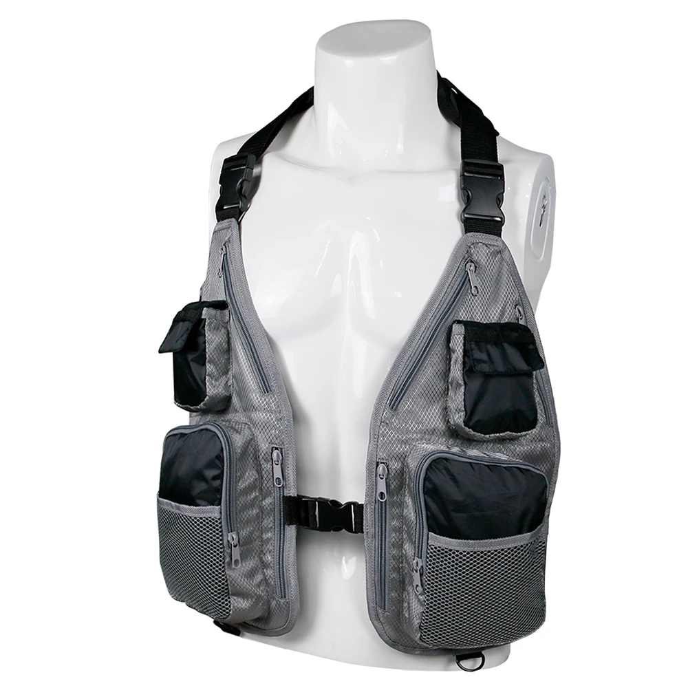 Bolsillos delanteros con cierre de cremallera para guardar moscas grandes.