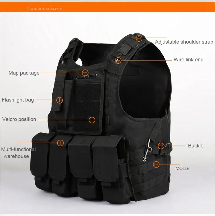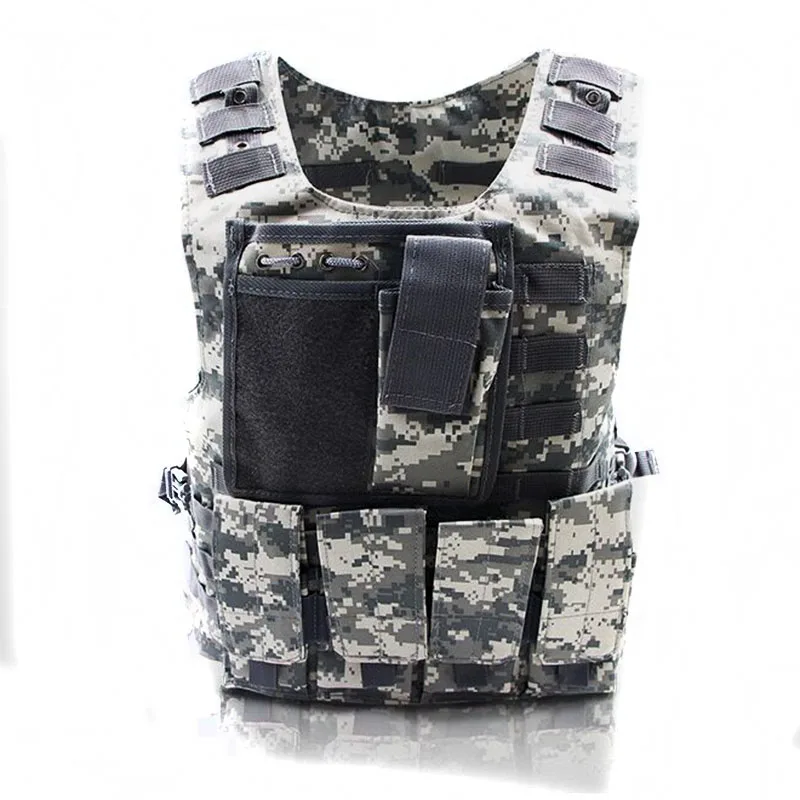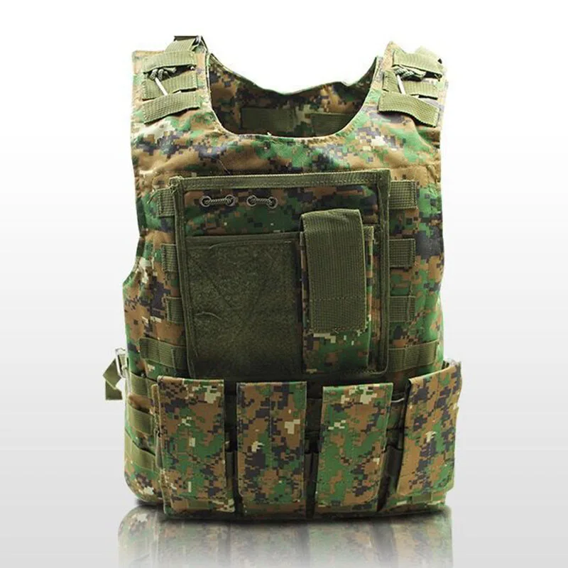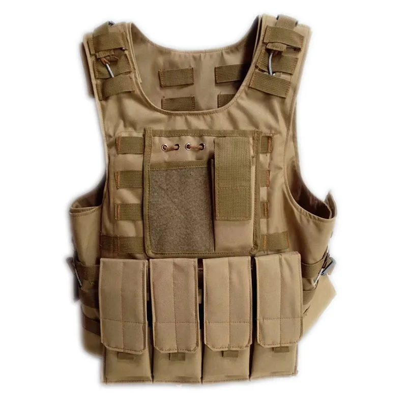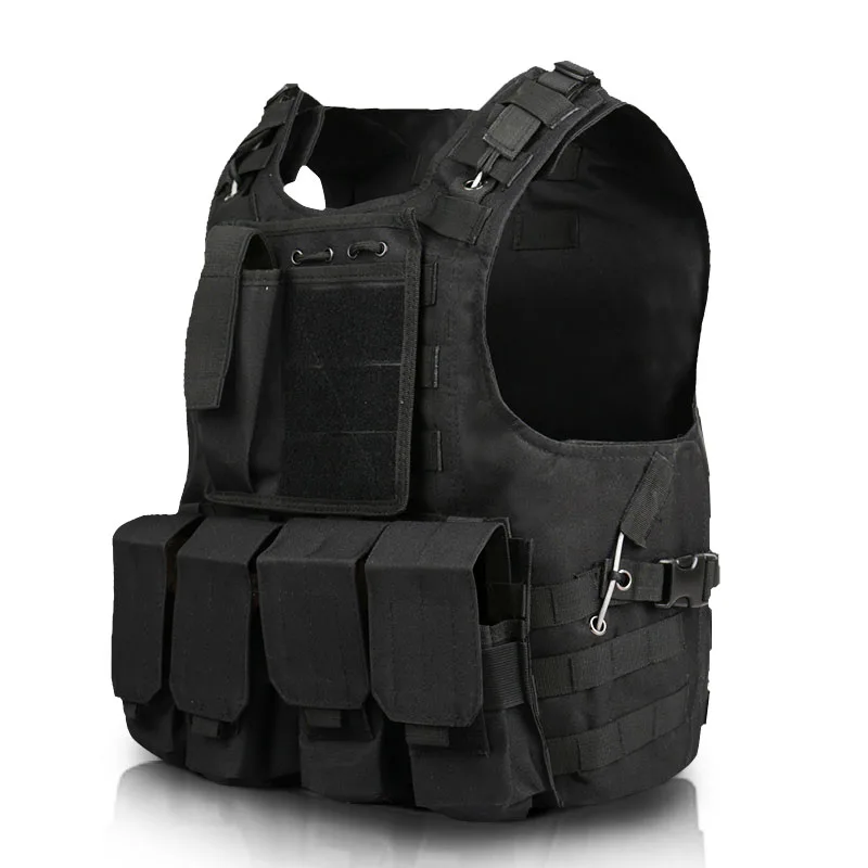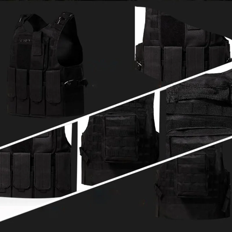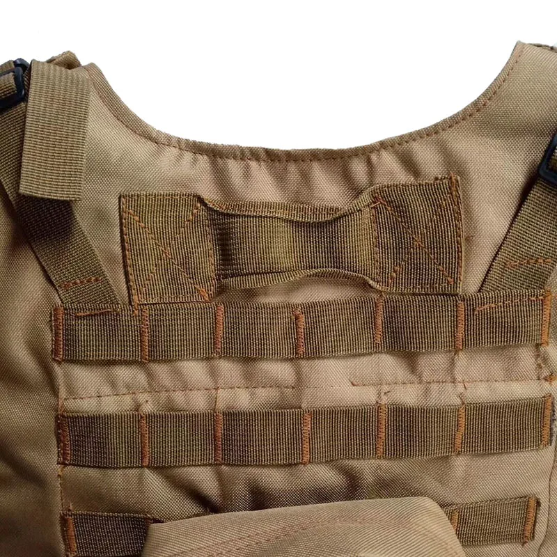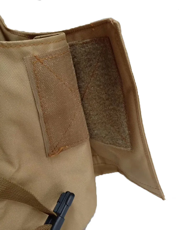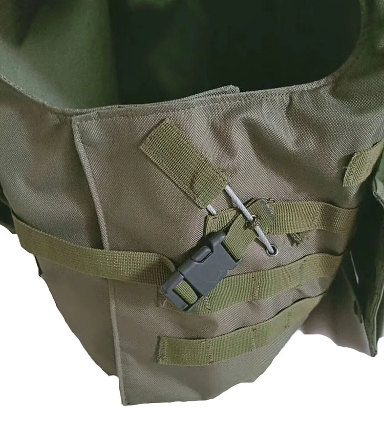 On the front, there is a large accessory pouch can be used as medical pouch, a Four magazine pouch for 5.56 .223 magazines, and a walkie talkie pouch.