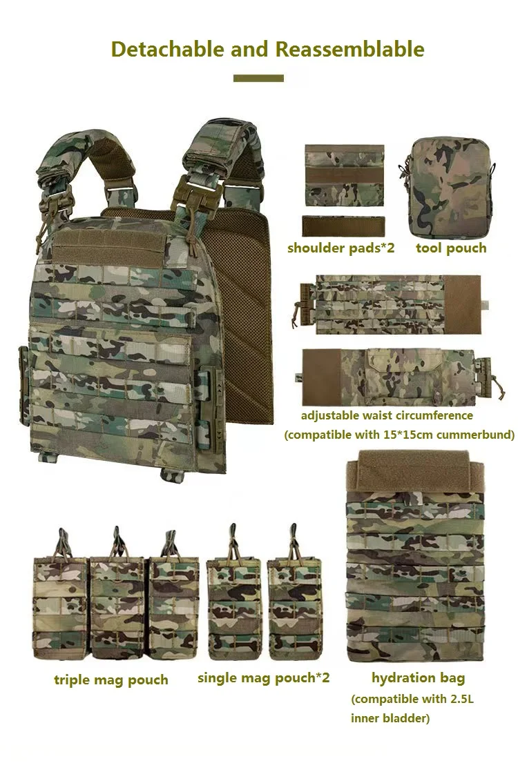 Chaleco portador de placa YAKEDA, bolsas para revistas Molle de nailon 1000D de liberación rápida, Chaleco táctico de caza