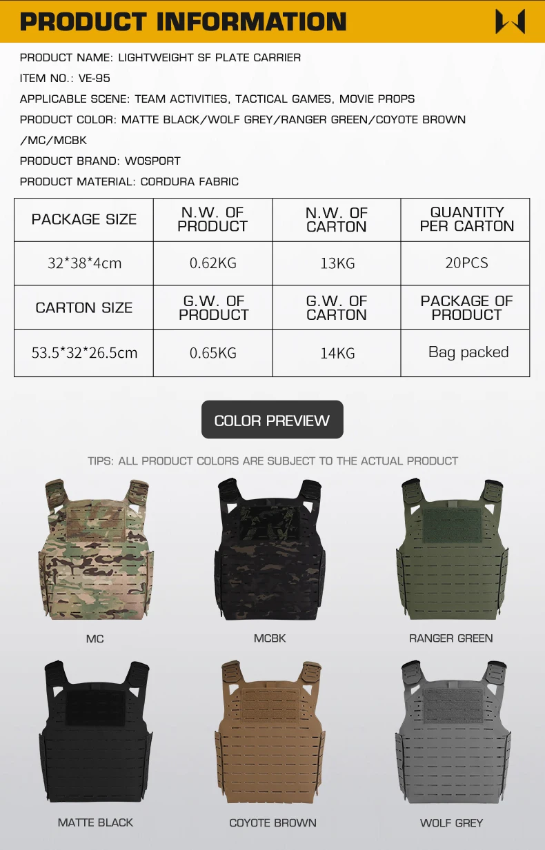 Cordura ligero soporte de placa SF chaleco de liberación rápida para exteriores con sistema MOLLE accesorios de caza