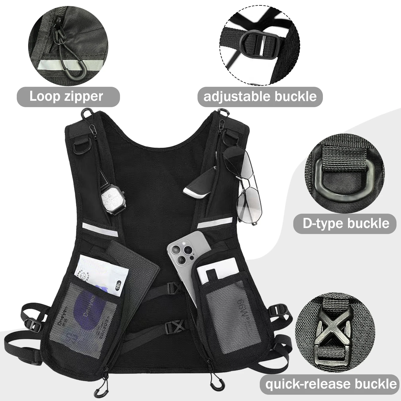 Chaleco reflectante ligero, equipo de seguridad con múltiples bolsillos para correr, ciclismo, senderismo, almacenamiento seguro para billetera de teléfono
