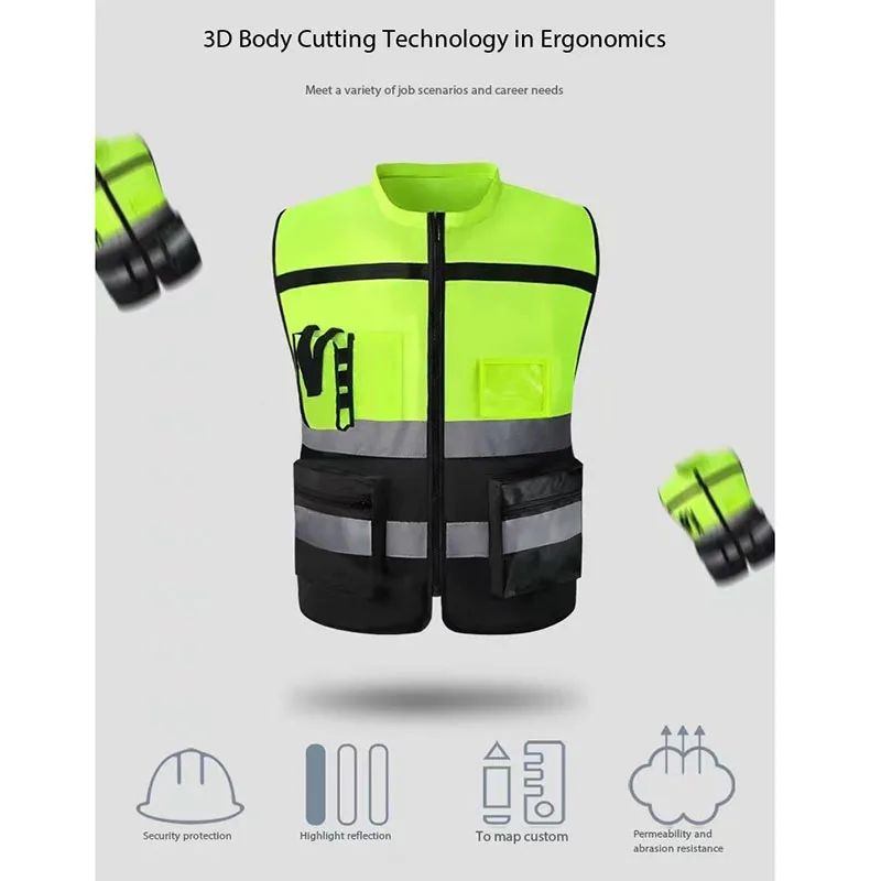 Chaleco reflectante de seguridad de gran tamaño, ropa de seguridad de alta visibilidad para ciclismo, chaqueta para correr, deportes de ciclismo, L-XXL