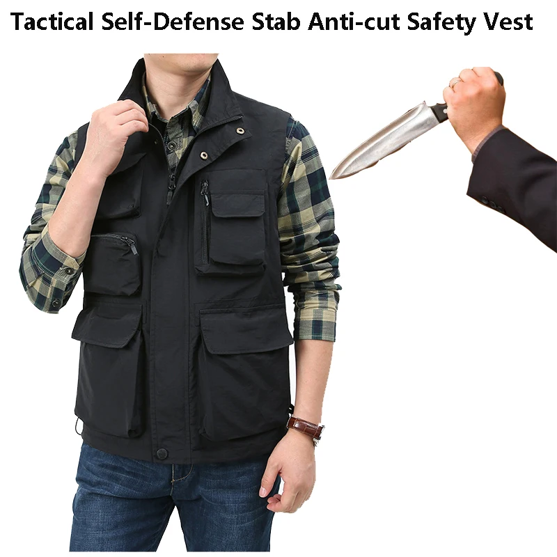 Hombres seguridad al aire libre anti-corte anti-puñalada chaleco multi-Bolsillo táctico autodefensa flexible Plus tamaño anti-Hacking secado rápido transpirable ropa protectora resistente al desgaste