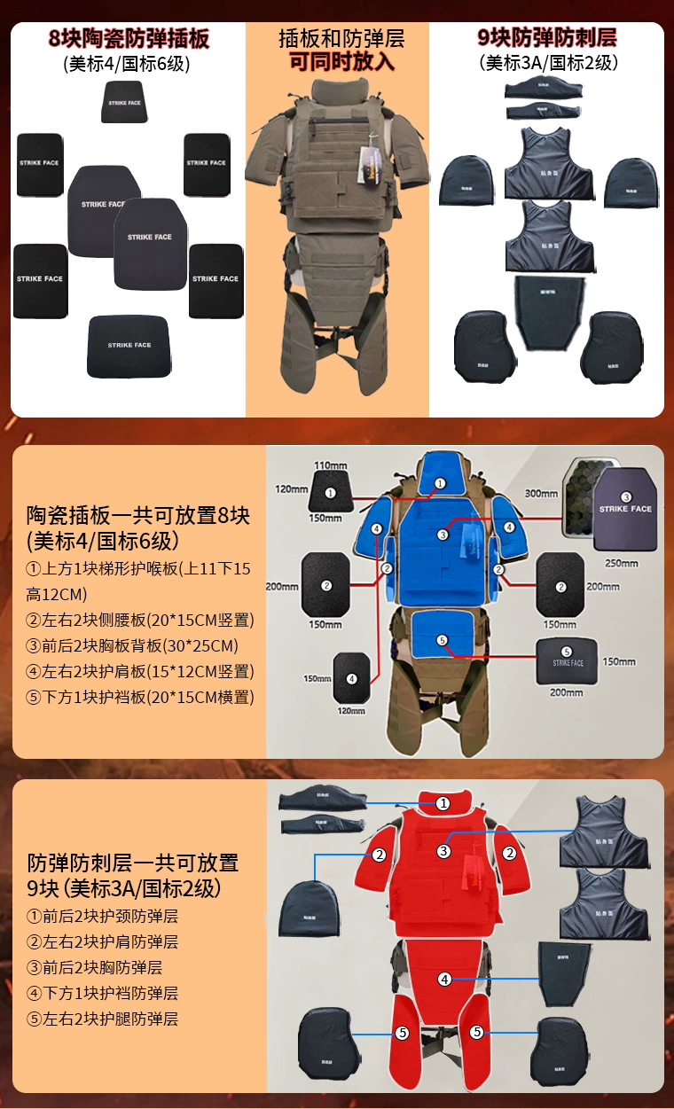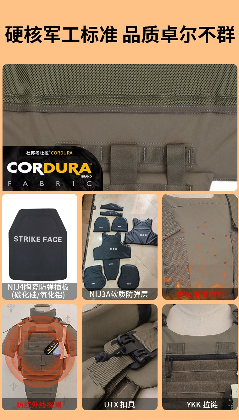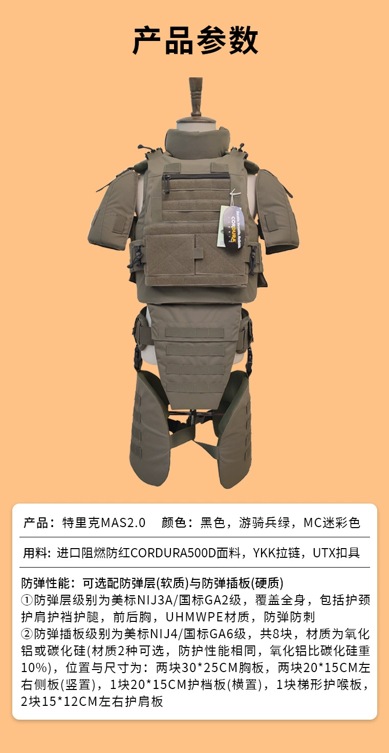 Atención: El juego completo no incluye placas antibalas. El tablero a prueba de balas tiene una opción separada, compruébelo y haga un pedido. Gracias. Materiales y mano de obra: YKK cremallera, hebilla UTX, mano de obra sólida, materiales originales, costura firme y fina Capacidad de protección: el chaleco de PC se puede colocar en la placa de inserción delantera y trasera de 30*25 cm, y la placa de inserción lateral de 20*15/15*15 cm se puede colocar después de agregar la bolsa de inserción a La circunferencia lateral. El clavo suave se puede colocar en la placa de inserción delantera y trasera de 30*25 cm al mismo tiempo, también se puede colocar en una gran área de capa suave a prueba de balas, el suspensorio se puede colocar en la placa lateral a prueba de balas de 20*15 cm y la capa suave a prueba de balas, el cuello, el hombro y la pierna se pueden colocar en la capa a prueba de balas. La capa protectora adicional que se puede comprar es la capa protectora doble de PE a prueba de balas y a prueba de agujas (polietileno de peso molecular ultraalto) 1. Todo el sistema (el casco es un accesorio de tiro, no incluye casco)