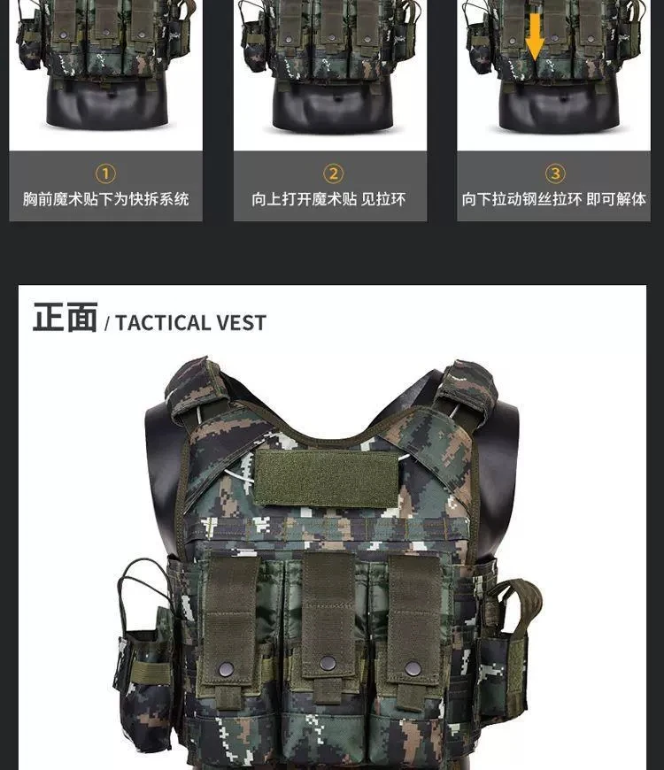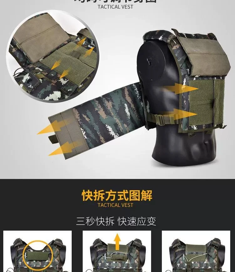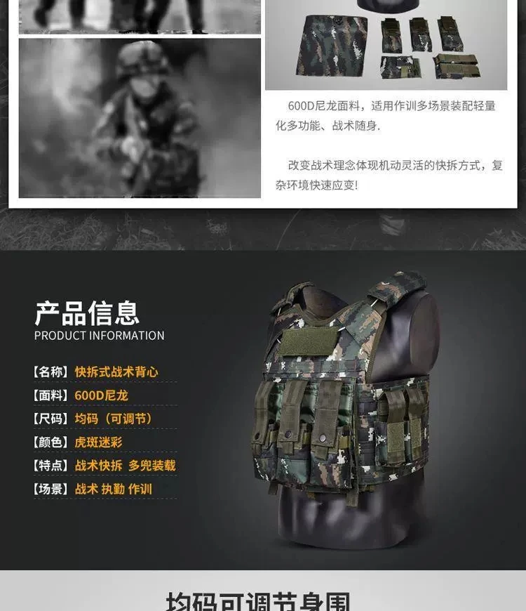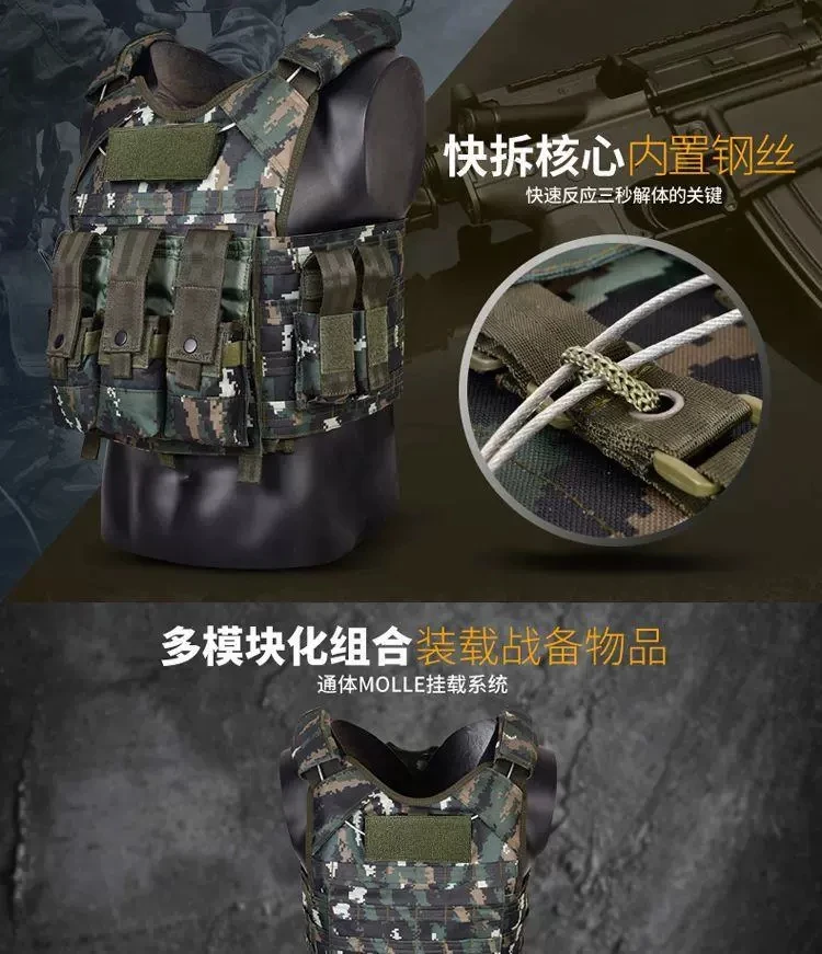 Chaleco táctico al aire libre de camuflaje Tabby Chaleco de rotura rápida de alambre de acero integrado