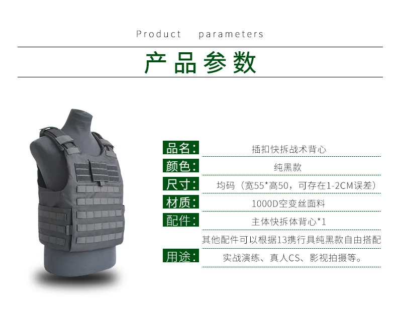 Chaleco táctico al aire libre, equipo de campo de desmontaje rápido, entrenamiento de carga, chaleco antibalas, traje a prueba de puñaladas