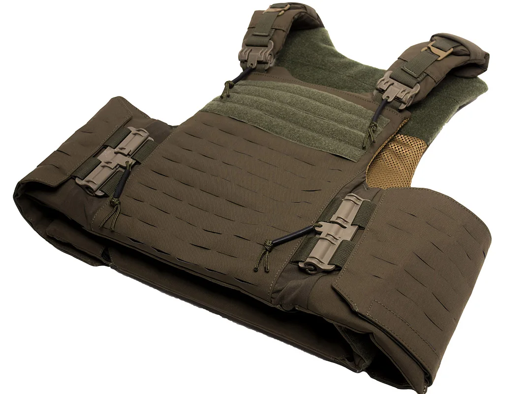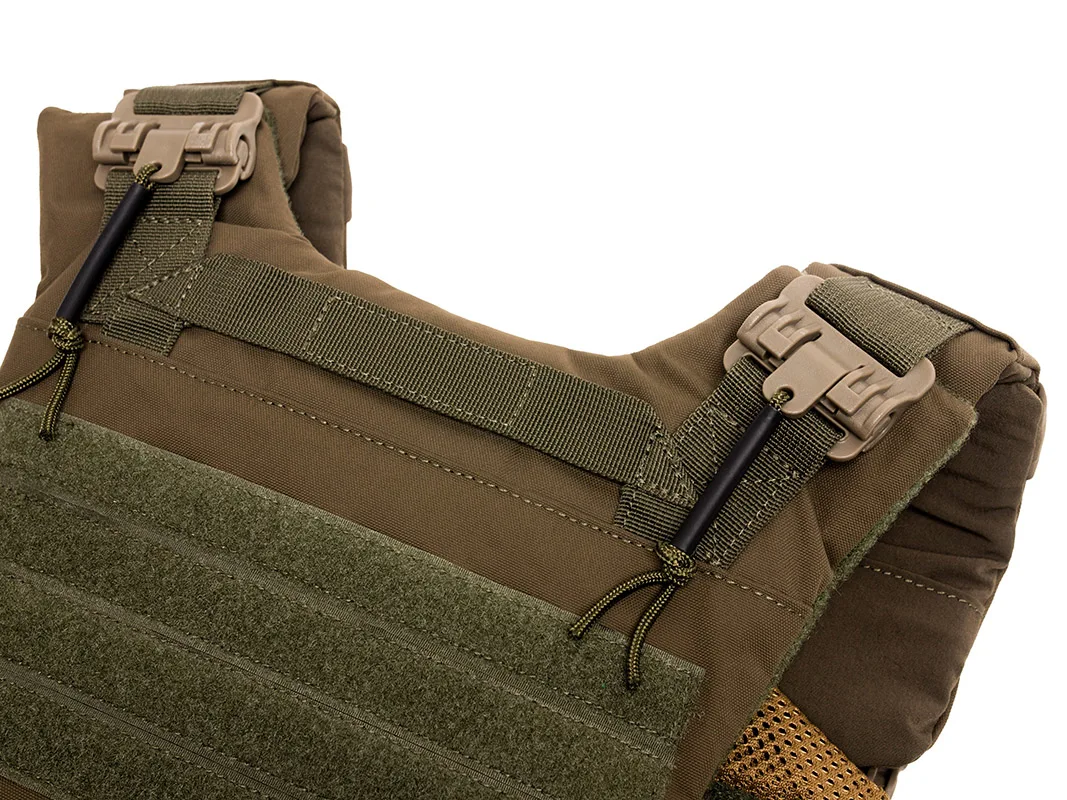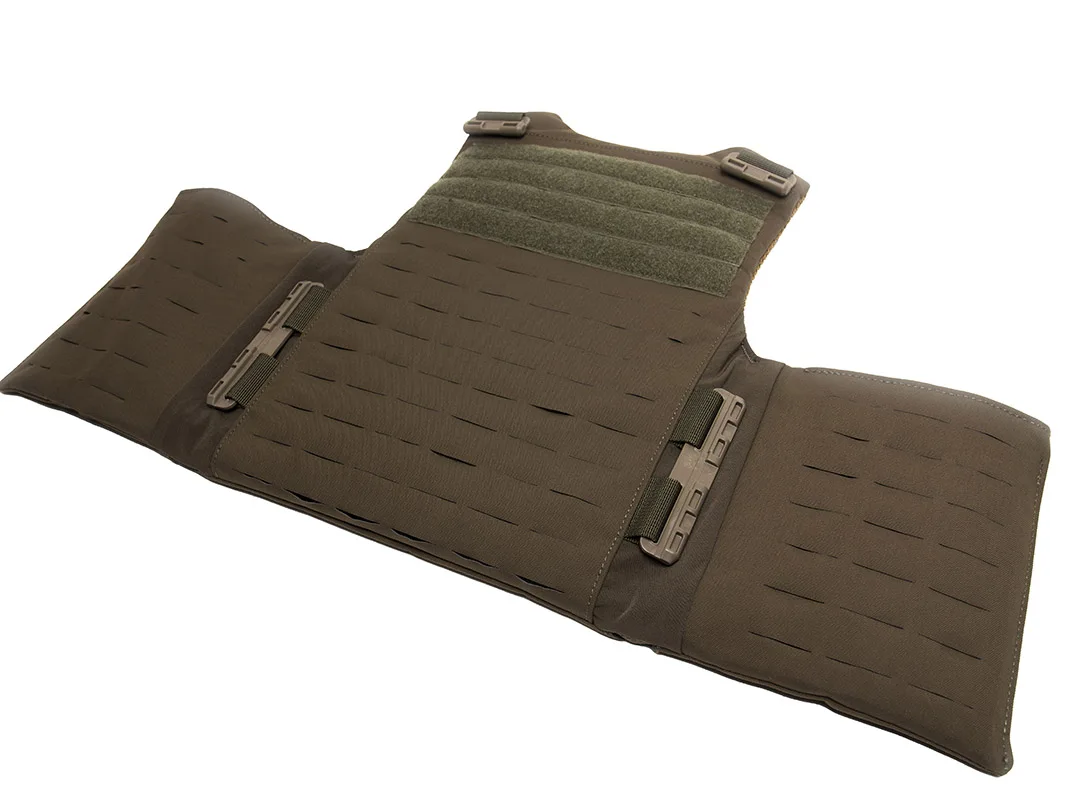 Chaleco táctico al aire libre con hebilla de liberación rápida, pretina cortada con láser de color RG en la parte posterior