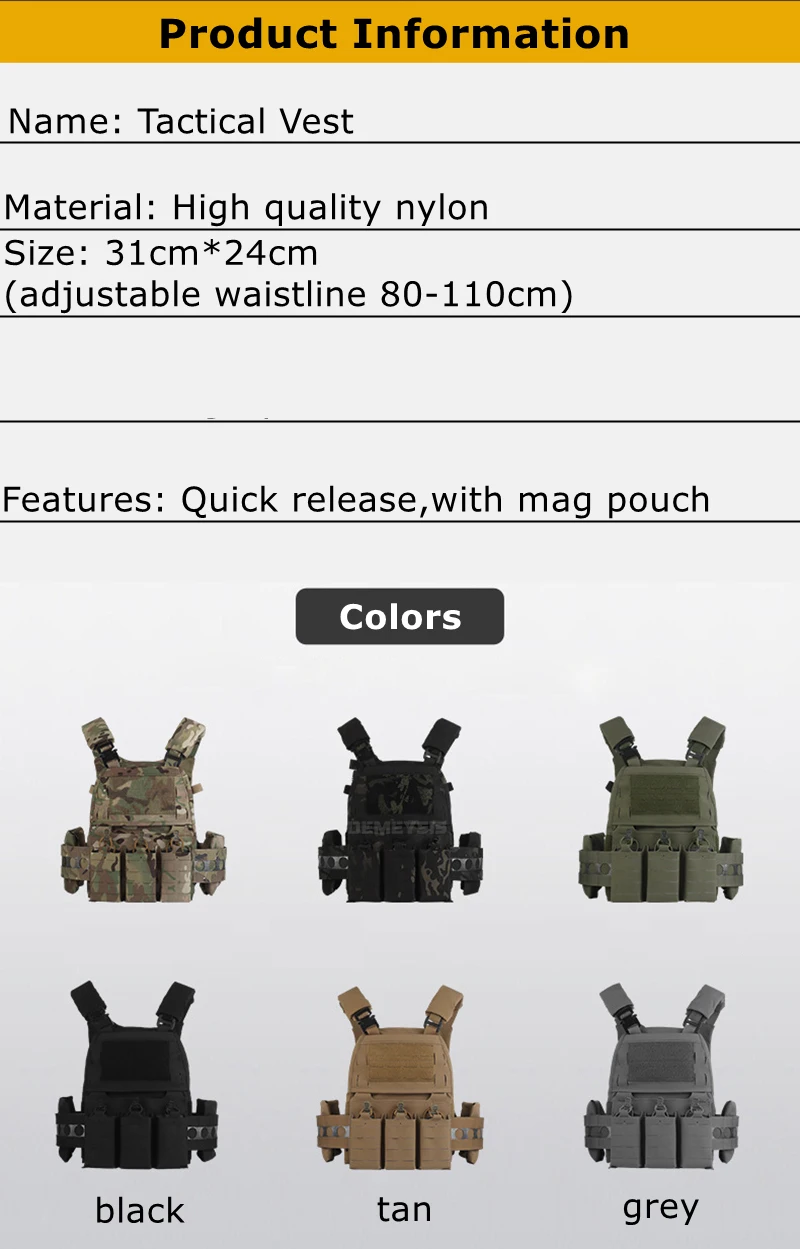 Paquete:1 × chaleco táctico (accesorios no incluidos)