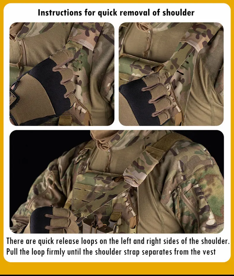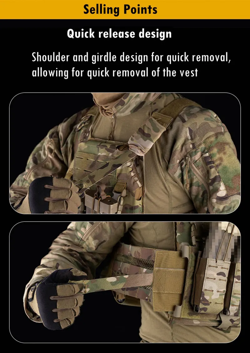 ●Diseño de liberación rápida.Hombro yFajaDiseño para una extracción rápida, lo que permite una extracción rápida del chaleco..
