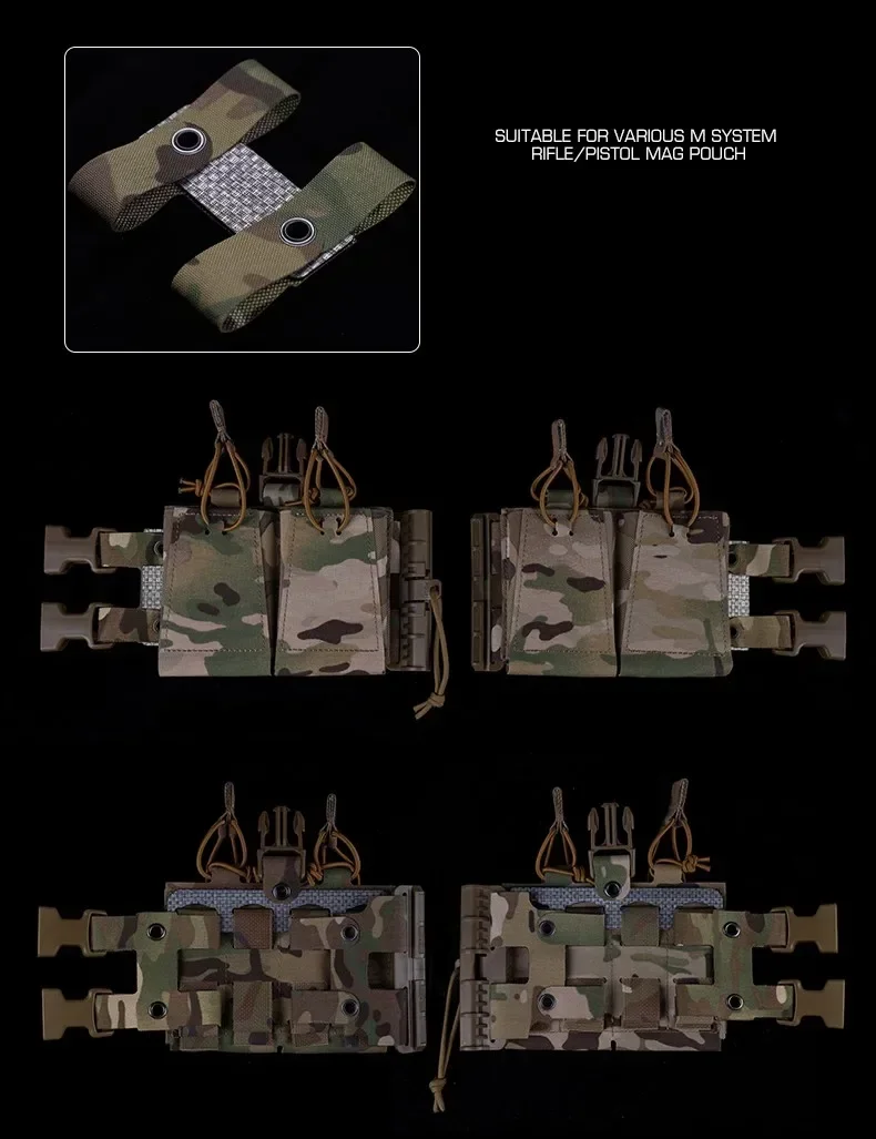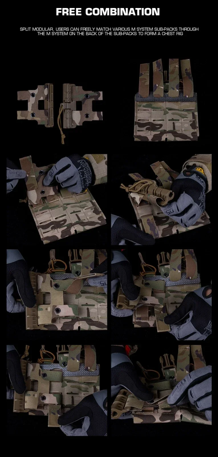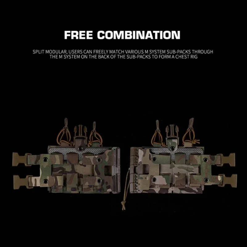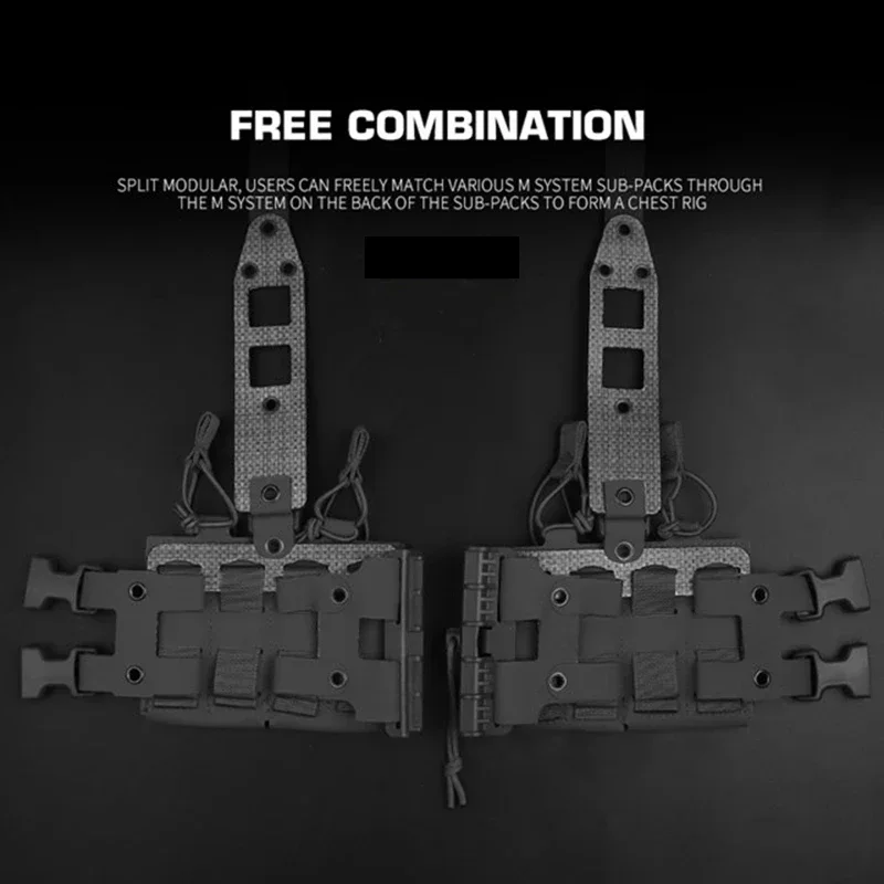 1.El diseño dividido y modular permite a los usuarios combinar libremente varias bolsas de módulos a través de la conexión del módulo en la parte posterior de la bolsa y ensamblarlas usted mismo en un marco del pecho.