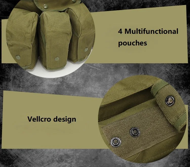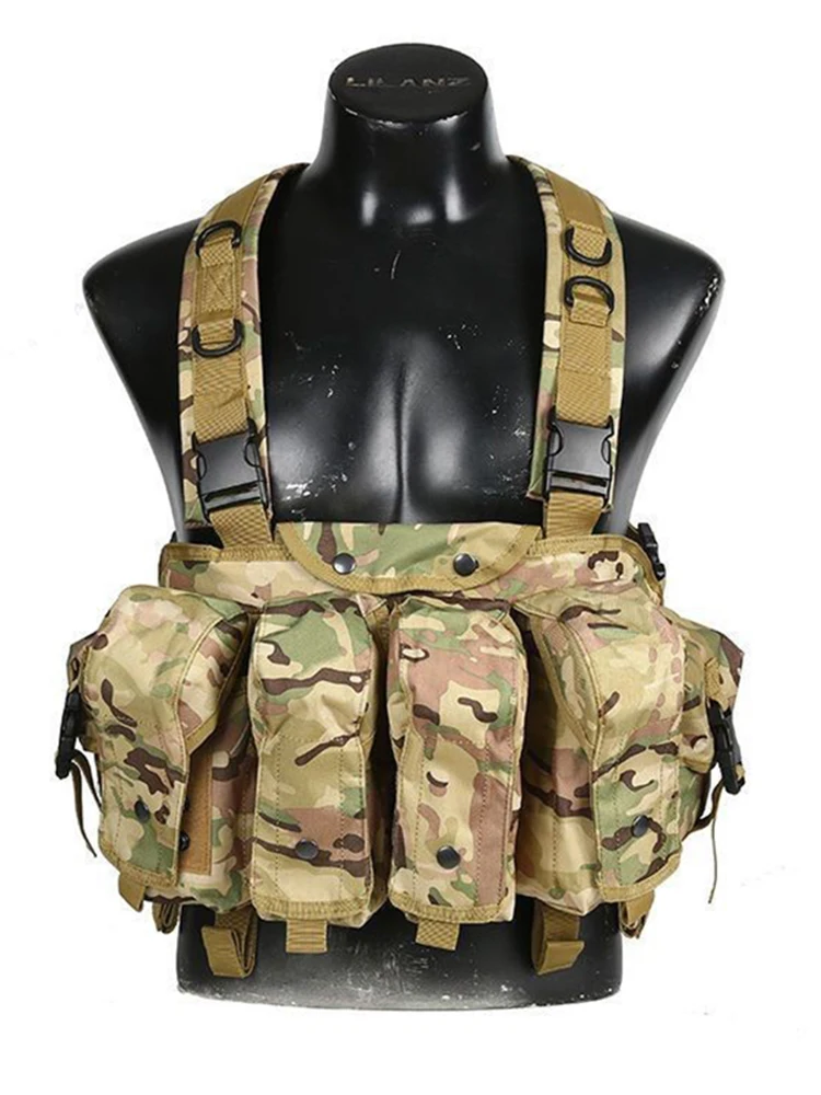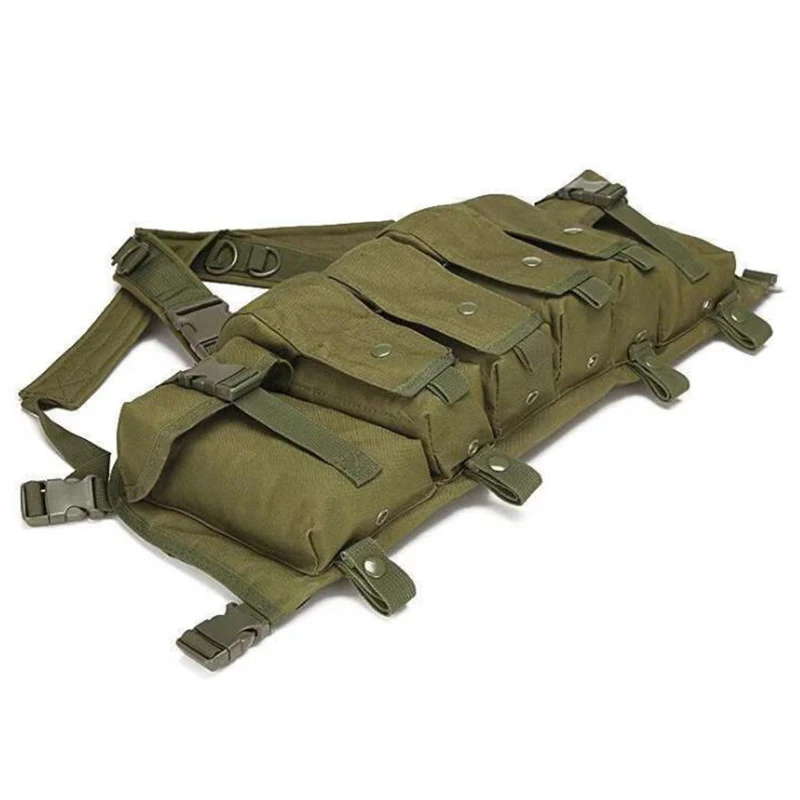 Un chaleco táctico muy práctico que puede contener 8 cargadores AK y cuenta con dos bolsillos laterales con gran capacidad de almacenamiento.