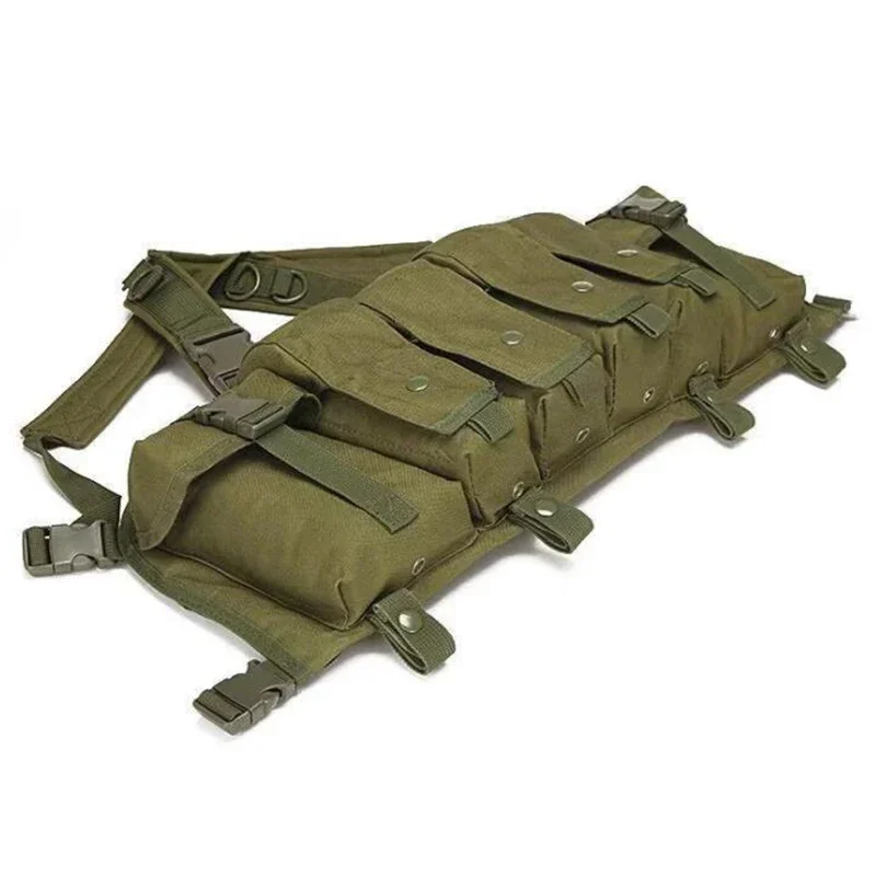 -4 bolsas para cargadores de rifle, cada bolsa puede contener hasta 2 cargadores tipo 7,62 (o 3 cargadores tipo 5,56) en forma de plátano