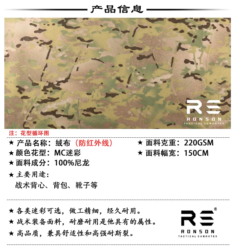 Chaleco táctico antiinfrarrojo MC, tela esponjosa de fondo para bricolaje, tela con gancho y bucle